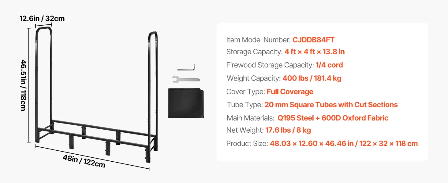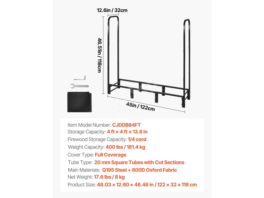 Stojan na drevo s nepremokavým krytom 1.22m, 1/4 cord, 400lb