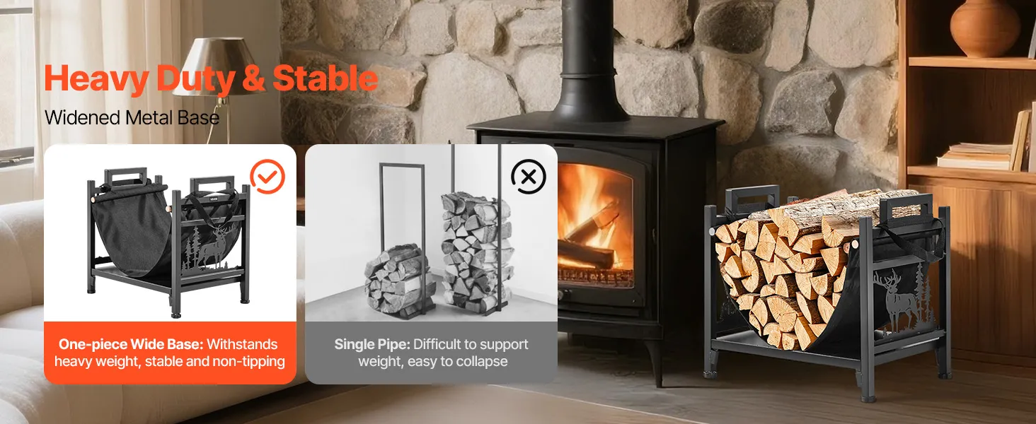Naše veľkokapacitné stojany na drevo bezpečne pojmú až 40 kg palivového dreva , čím vám zabezpečia viac než dostatok dreva na udržanie tepla pre vašu rodinu a dobrého zásobenia vášho domu počas celej zimy.