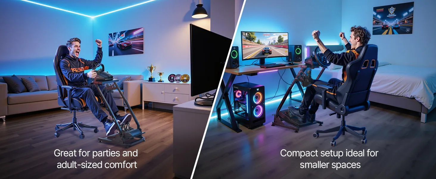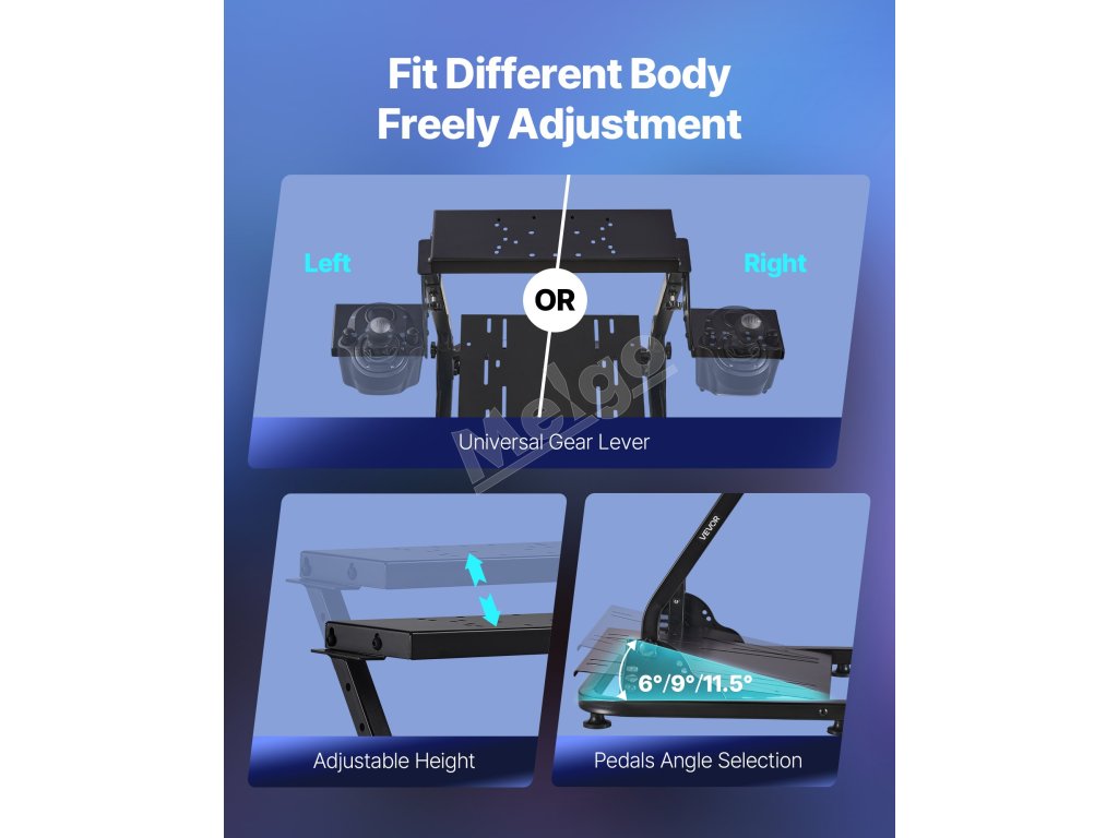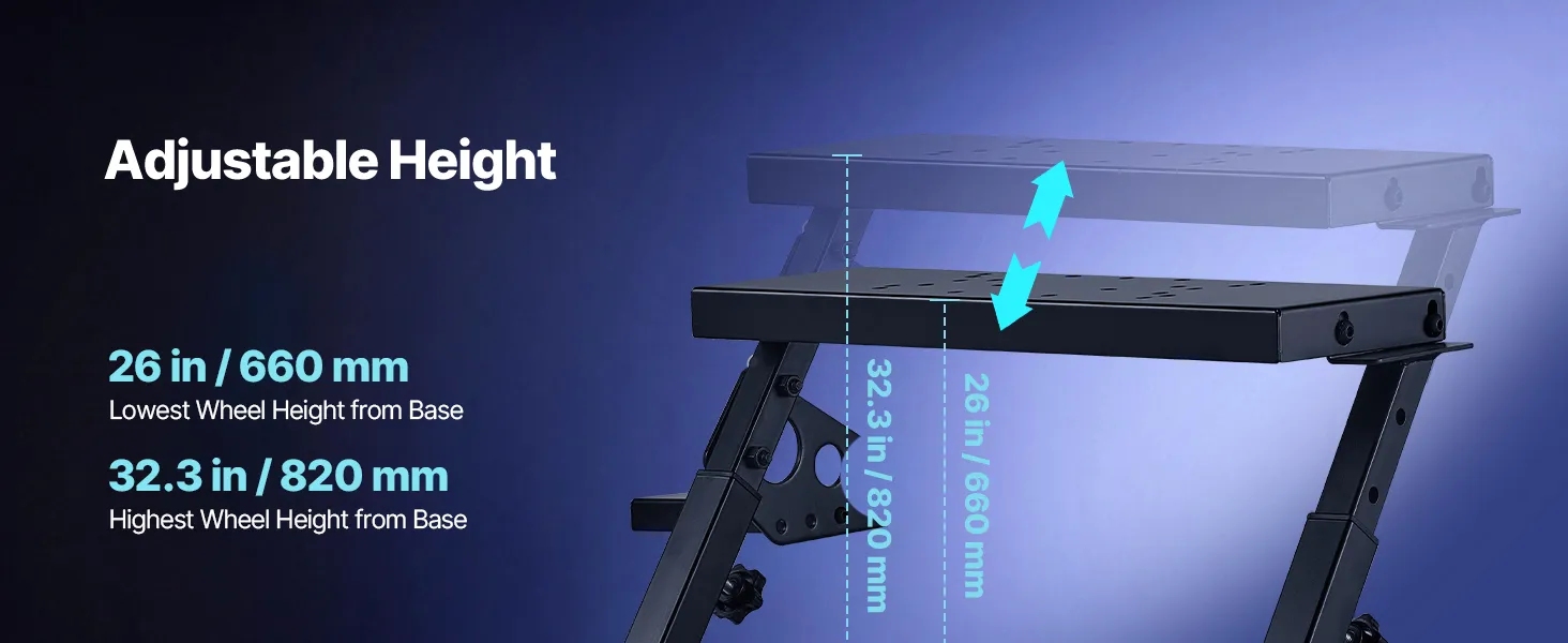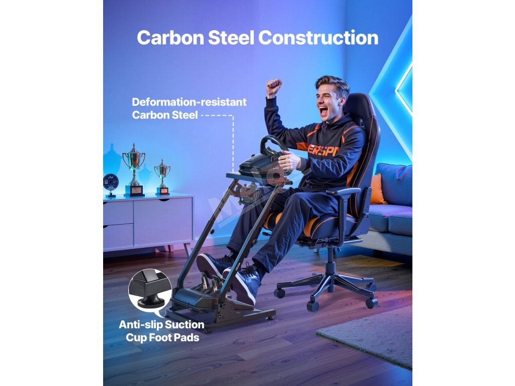 Nastaviteľný stojan na pretekárske volanty určený pre fanúšikov pretekárskych hier. Plne prispôsobiteľný, aby sa prispôsobil vášmu telu a poskytol vám pohlcujúci zážitok. Vyrobený z uhlíkovej ocele s hladkým povrchom odolným proti poškriabaniu. Ľahko sa čistí - stačí ho utrieť, aby vyzeral ako nový.