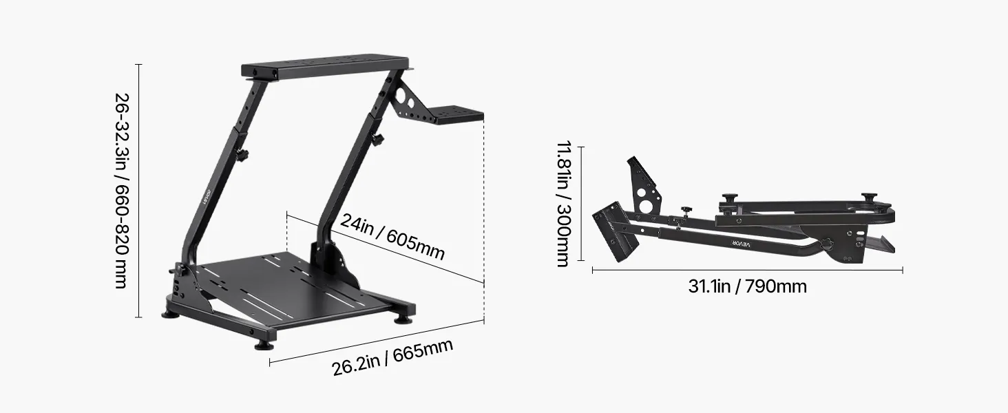 Stojan na simulačný volant, nastaviteľný a skladací, bez pedálov