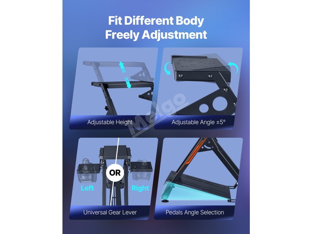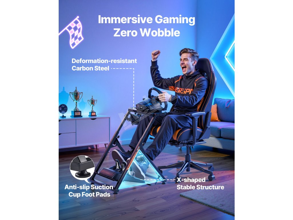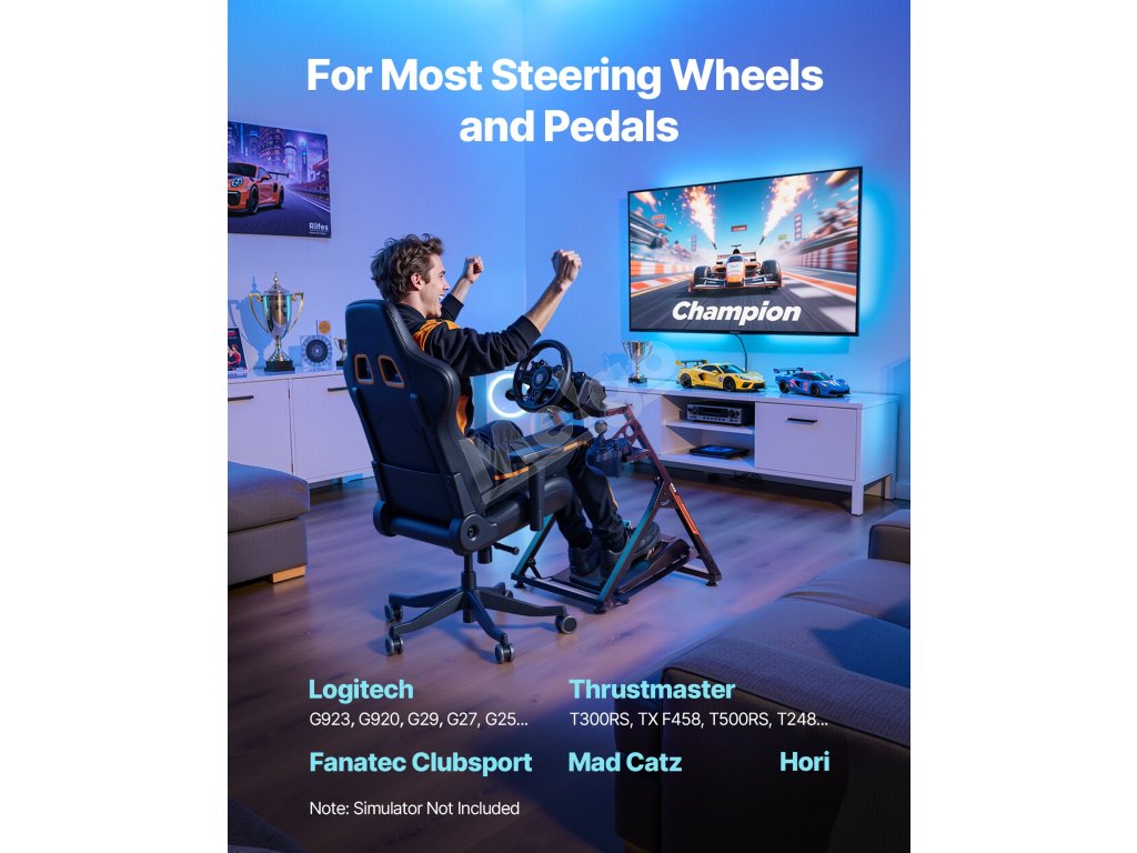 Nastaviteľný stojan na pretekárske volanty určený pre fanúšikov pretekárskych hier. Plne prispôsobiteľný, aby sa prispôsobil vášmu telu a poskytol vám pohlcujúci zážitok. Vyrobený z uhlíkovej ocele s hladkým povrchom odolným proti poškriabaniu. Ľahko sa čistí - stačí ho utrieť, aby vyzeral ako nový.