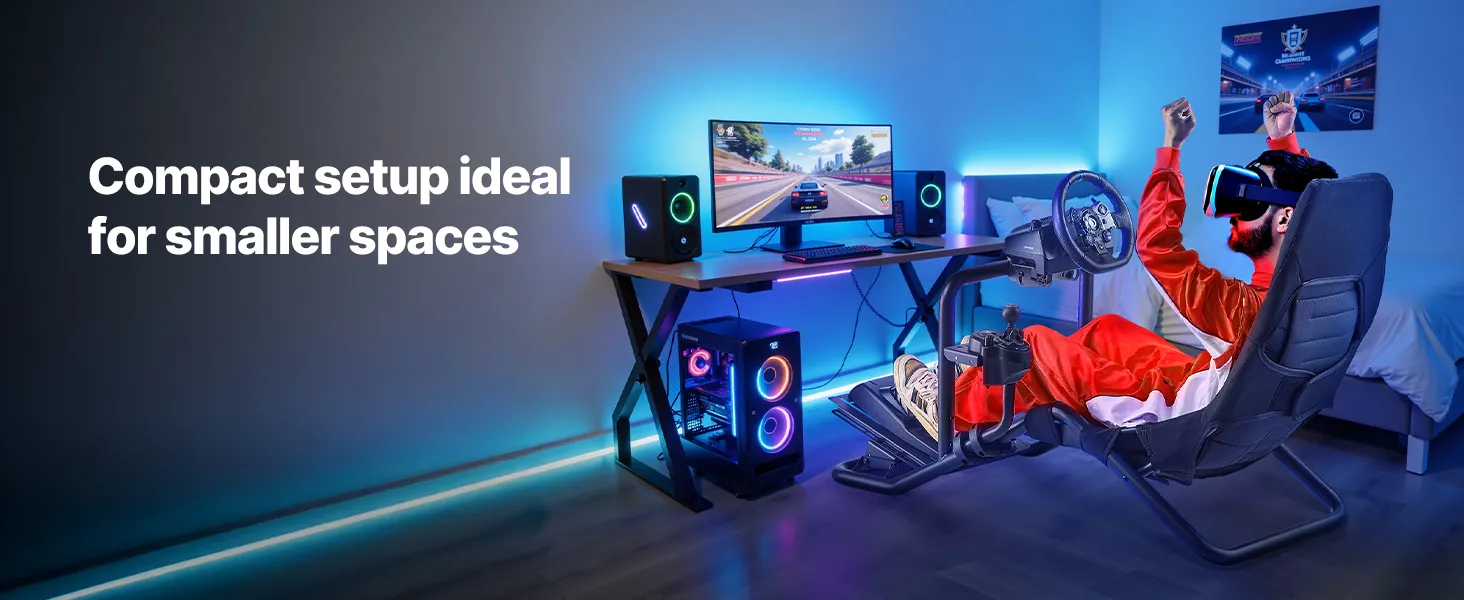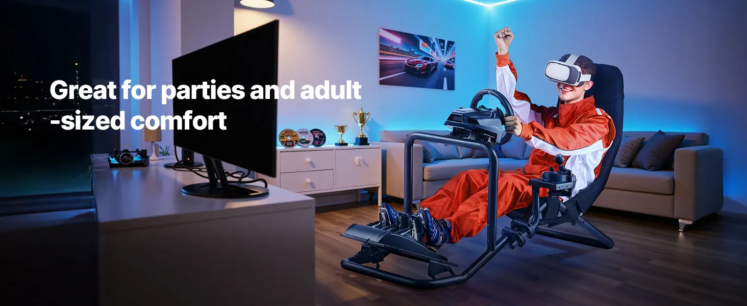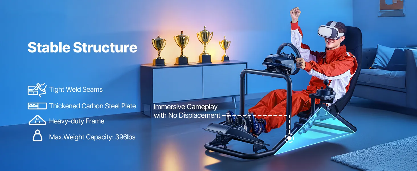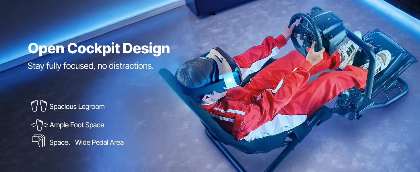 Tento stojan na kolesá s otvoreným kokpitom je vybavený odolným rámom z uhlíkovej ocele, ktorý zvládne kolesá s vysokým krútiacim momentom. Priedušné sedadlo z oxfordskej tkaniny zaručuje pohodlie, zatiaľ čo otvorená konštrukcia poskytuje nohám úplnú voľnosť, čo je ideálne pre domáce alebo profesionálne simulátory.