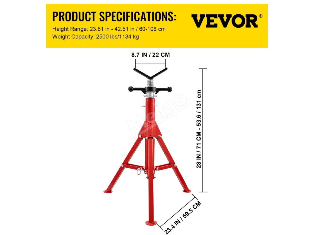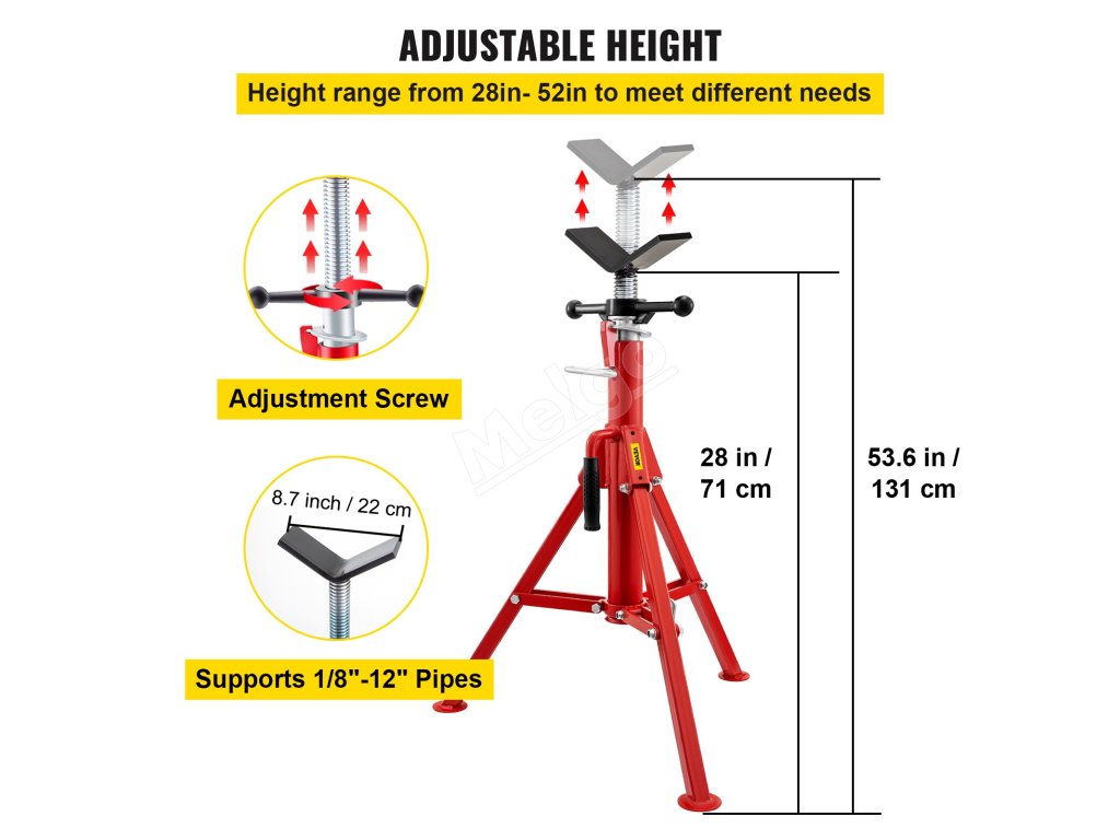Stojan na rúry, 0,3–30,5 cm, výška 71,1–132,1 cm, nosnosť 1133,9 kg