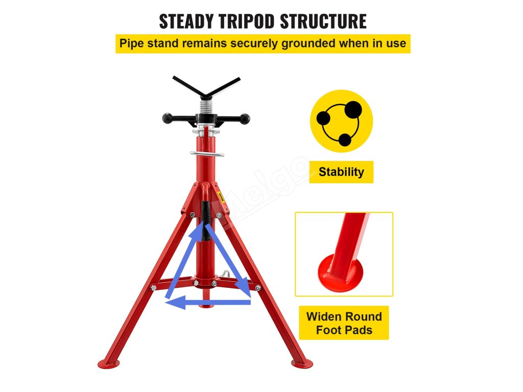 Trojnožková konštrukcia poskytuje vynikajúcu oporu pri nakladaní ťažkých rúr a rozšírené podložky pod nohy zlepšujú jej stabilitu.