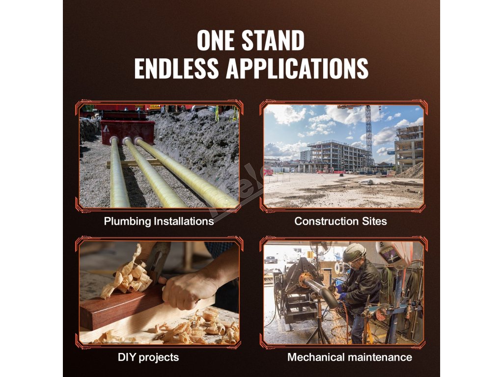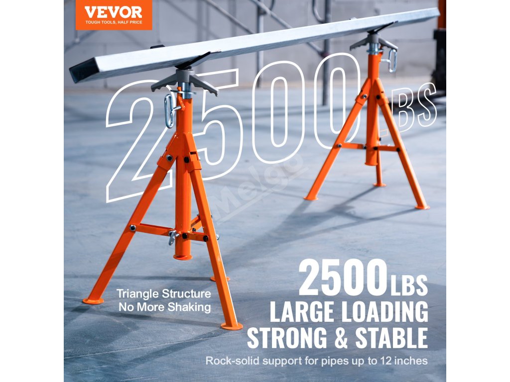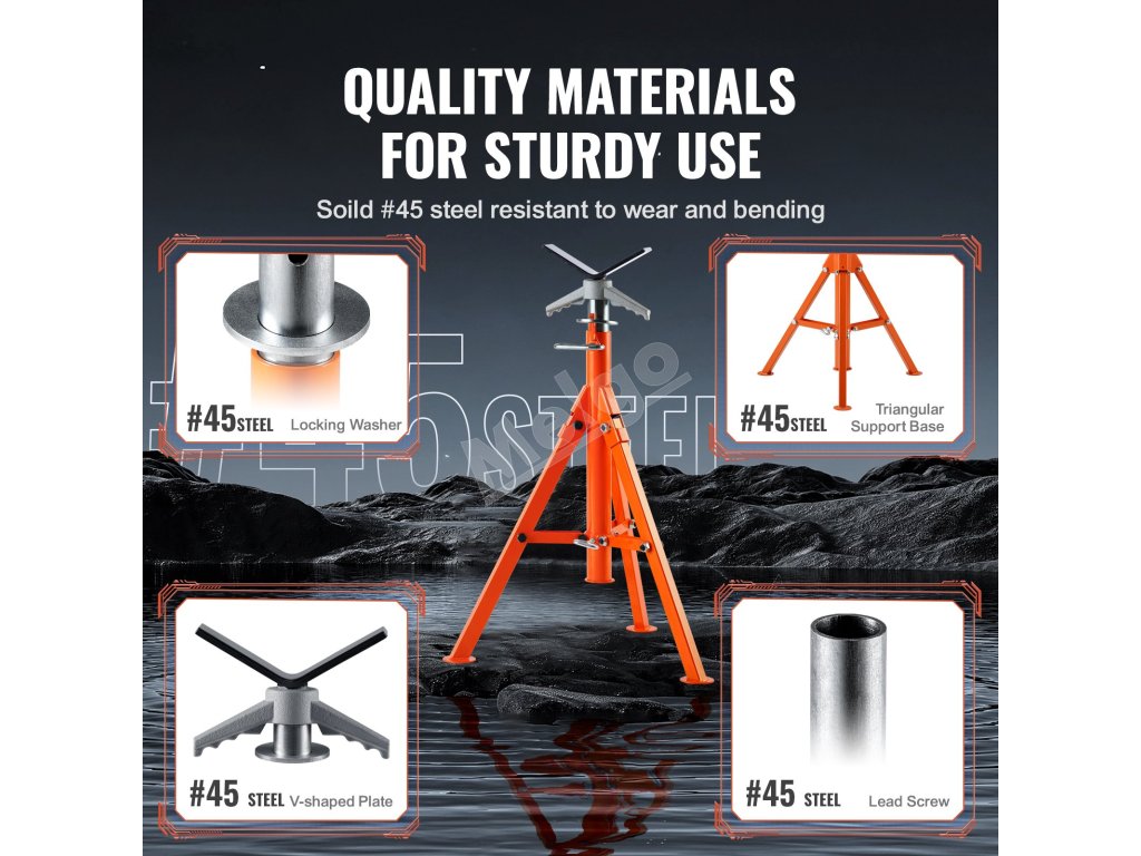 Stojan na zdvihák potrubia VEVOR: Váš pevný partner pri práci s potrubím! Vychutnajte si neochvejnú stabilitu a nosnosť 2500 libier, bez námahy pojme rúry od 1/2 do 12 palcov. Užite si bezproblémové nastavenie výšky, všestranné použitie a dlhotrvajúcu odolnosť oceľovej konštrukcie #45.