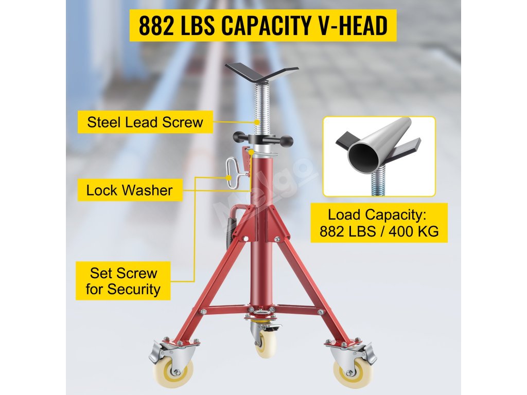 Stojan na rúry s v hlavou, výška 71.12-132.08 cm, nosnosť 400.1 kg