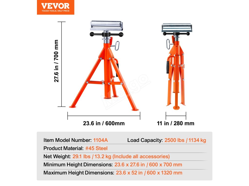Zmeňte definíciu svojich projektov s veľkým zaťažením s valčekovým stojanom VEVOR! Zažite pevnú stabilitu, nosnosť 2500 libier, nastaviteľnú výšku od 27,6" do 52", robustnú konštrukciu z ocele #45, všestrannú funkčnosť a jednoduchú prenosnosť. Pozdvihnite svoje precízne spracovanie s VEVOR.