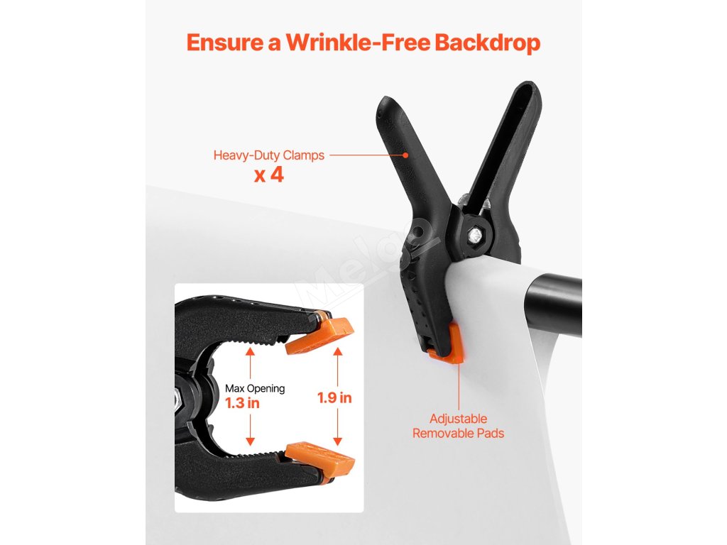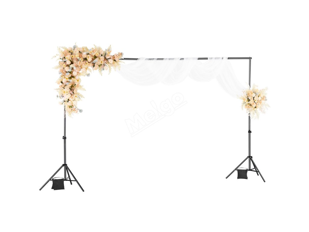 Tento stojan na pozadie je vybavený 2 statívovými podperami pre stabilitu a odolnosť, s nosnosťou 10 libier. Jeho nastaviteľná veľkosť je vhodná pre veľké pozadia a je ideálny pre štúdiá, domáce použitie, hotely a pódiá.