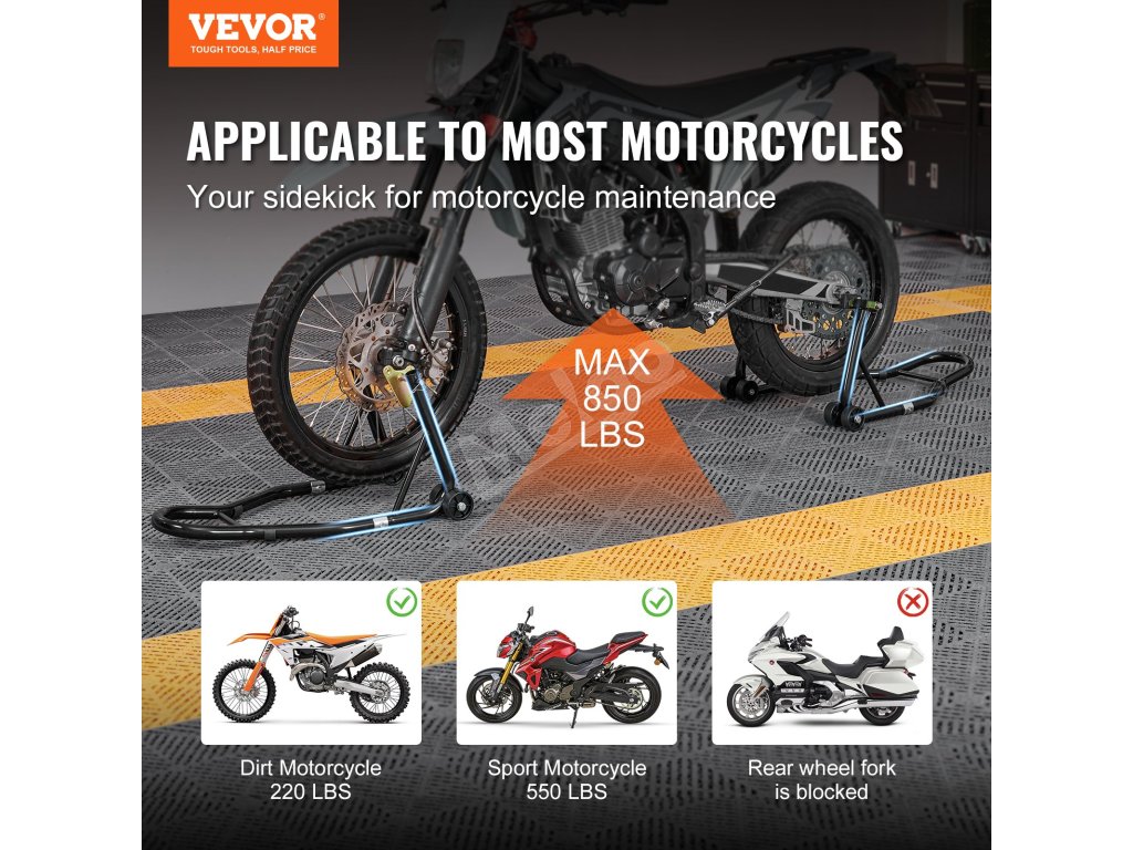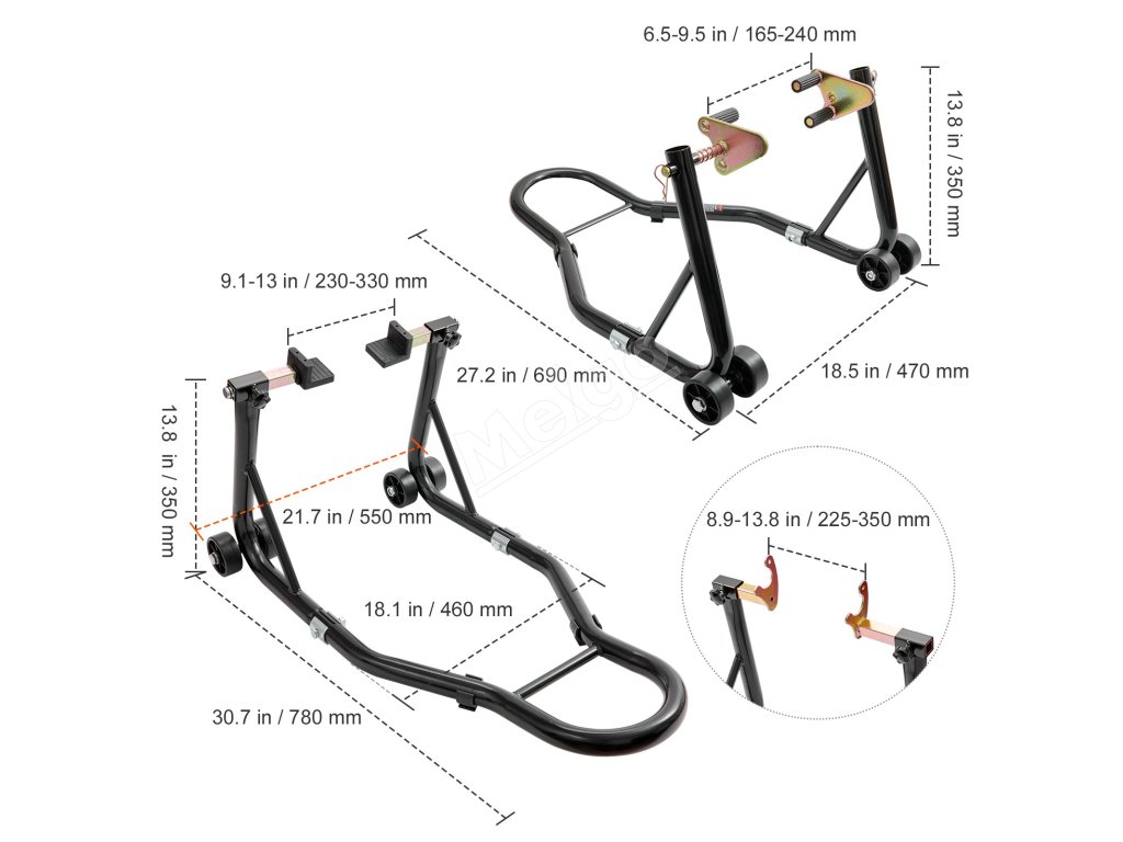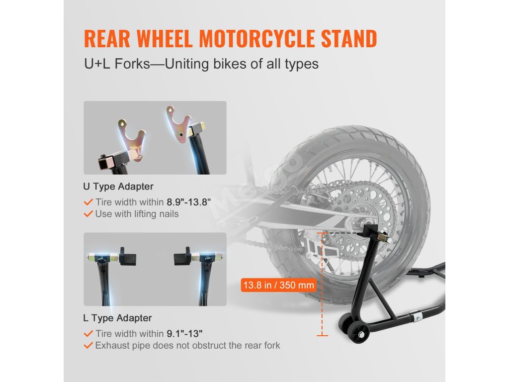 Stojan na motocykel 0.39 tons predný a zadný, u+l vidlica/swingarm