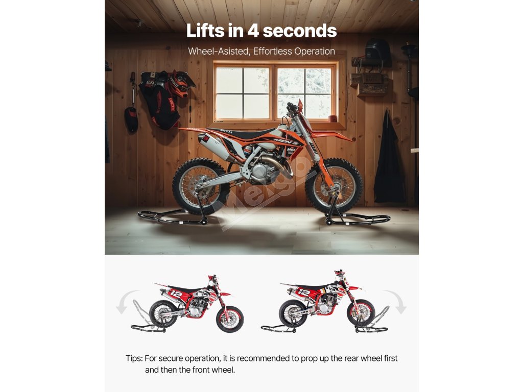 Stojan na zdvíhanie motocyklov 1100lbs predný dual-fork zadný u+l
