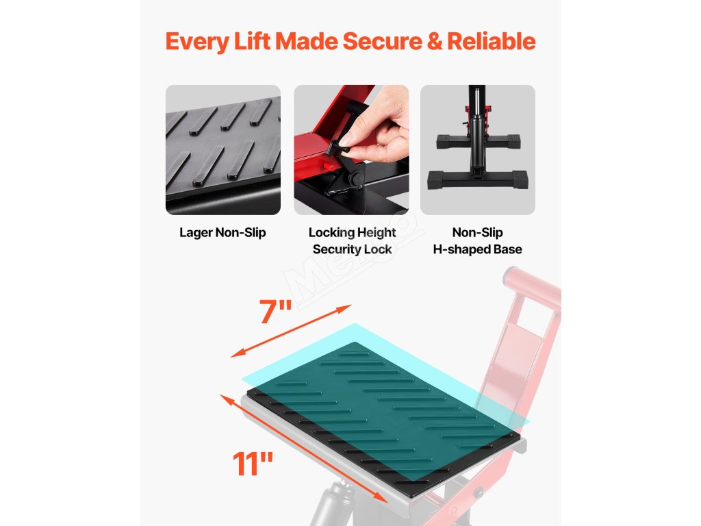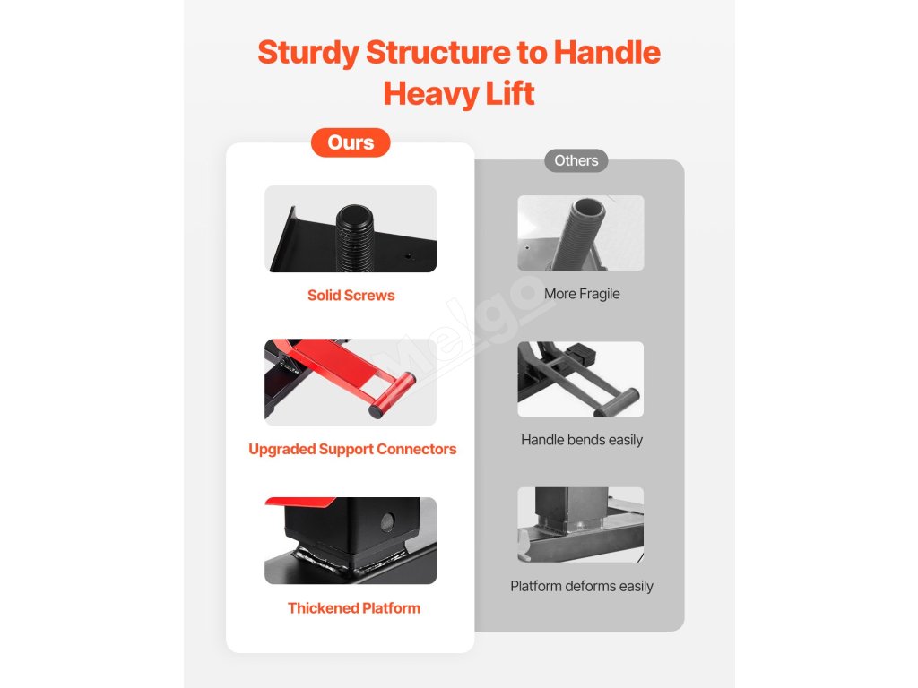 Náš stojan na údržbu motocyklov je vyrobený z profesionálnej zosilnenej ocele pre veľké zaťaženie a poskytuje stabilnú oporu pre väčšinu motocyklov. Je odolný voči deformácii a ohýbaniu, je ideálny na domáce opravy, dlhodobé skladovanie a bežnú údržbu.
