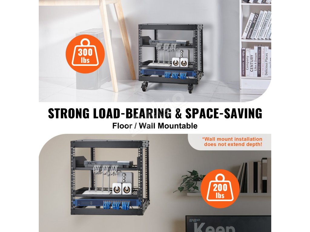 Náš rack s otvoreným rámom má nastaviteľnú hĺbku od 23" do 40" a môže byť namontovaný na stenu alebo voľne stojaci. Užívajte si vynikajúce vetranie, jednoduchú správu káblov a maximálne využitie priestoru. Vďaka pojazdným kolieskam je presun vášho racku hračkou. Ideálny pre maloobchodné miesta, kancelárie a všetky priestory s obmedzeným priestorom.