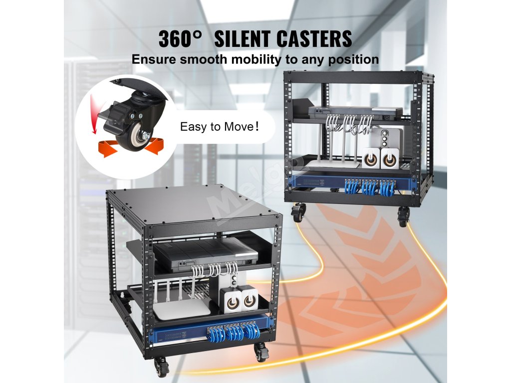 Je vybavený hornou policou na dodatočné uloženie a ochranu vášho zariadenia, zatiaľ čo pojazdné kolieska uľahčujú premiestňovanie otvoreného rámového stojana kamkoľvek potrebujete. Zažite mobilitu bez námahy a väčšie pohodlie pri každom pohybe!