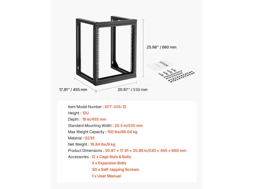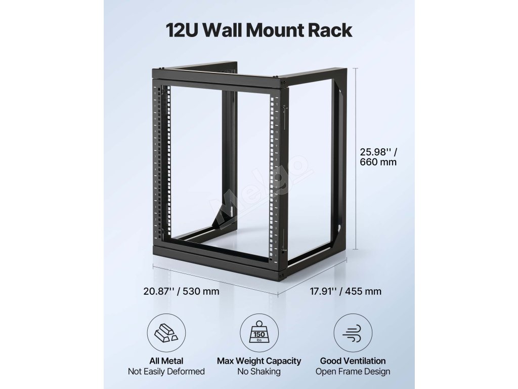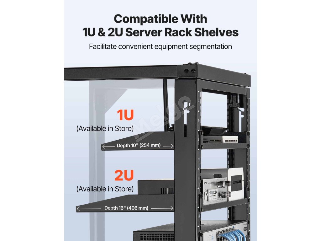 Náš sieťový stojan je vybavený otvorenými výklopnými dverami, ktoré umožňujú otváranie v uhle 180°. Vďaka pevnej konštrukcii z uhlíkovej ocele unesie až 150 libier (68 kg) a udrží vaše zariadenia stabilné. Vďaka kompletnému príslušenstvu môžete bezpečne namontovať prepínače alebo iné sieťové zariadenia priamo na stojan!