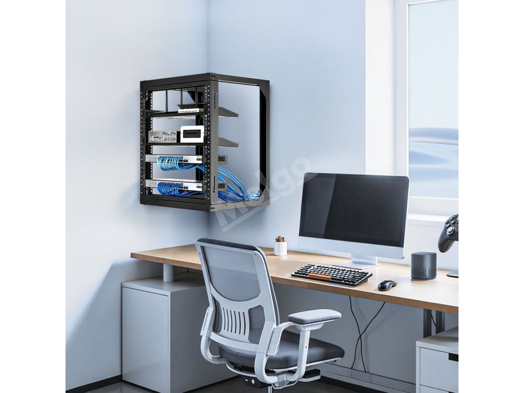 Tento nástenný stojan na servery má pevnú konštrukciu, odoláva otrasom a deformáciám, čím zaručuje bezpečnosť a spoľahlivosť.