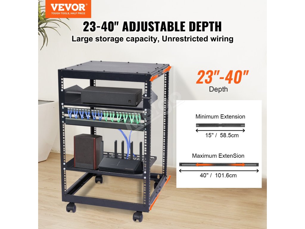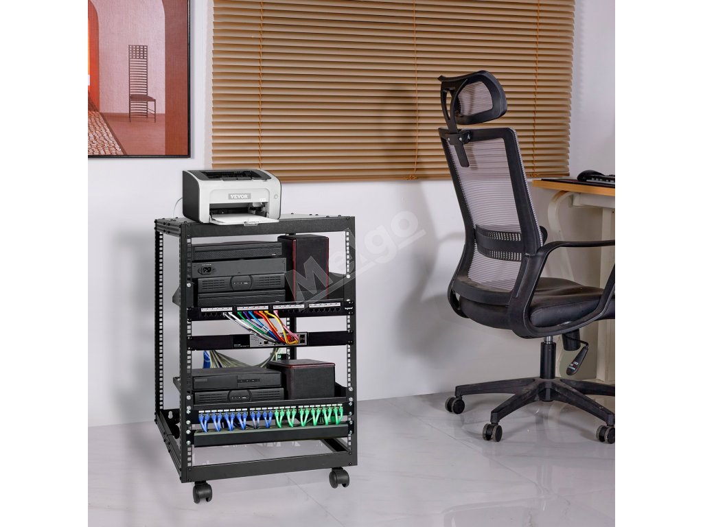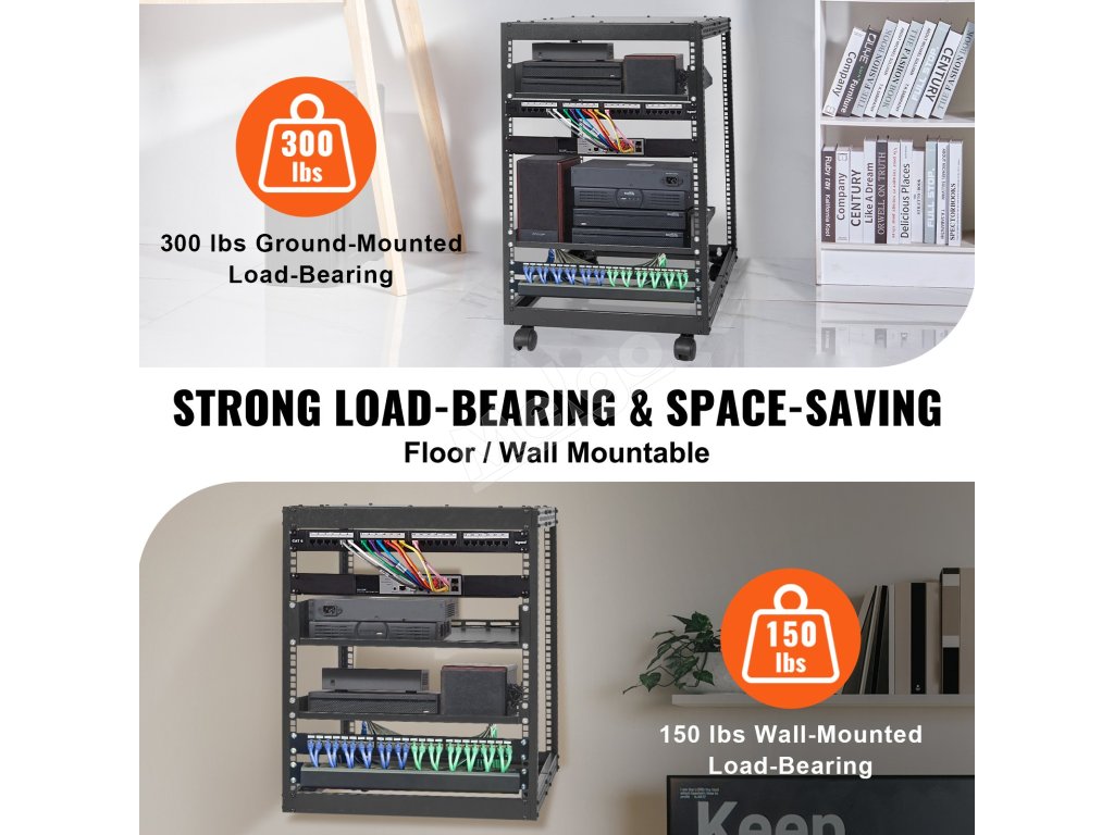 VEVOR 15U open frame rack vám poskytuje profesionálne služby ukladania sieťových zariadení. Môže byť namontovaný na stenu alebo voľne stojaci, je ideálnou voľbou pre obmedzený priestor a maximalizuje váš dostupný priestor.