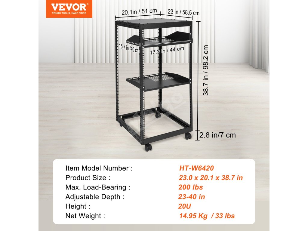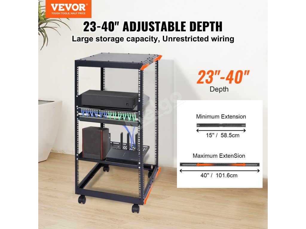 VEVOR 20U open frame rack vám poskytuje profesionálne služby ukladania sieťových zariadení. Môže byť namontovaný na stenu alebo voľne stojaci, je ideálnou voľbou pre obmedzený priestor a maximalizuje váš dostupný priestor.