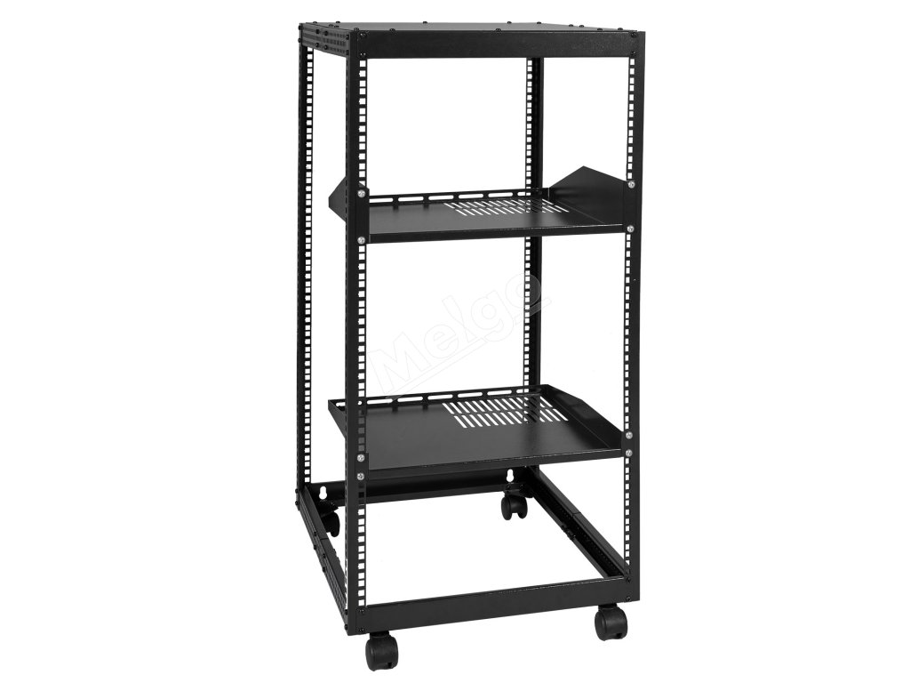 Serverový rack 20U otvorený 4-stĺpový, hĺbka 58.5-101.6cm s kolieskami