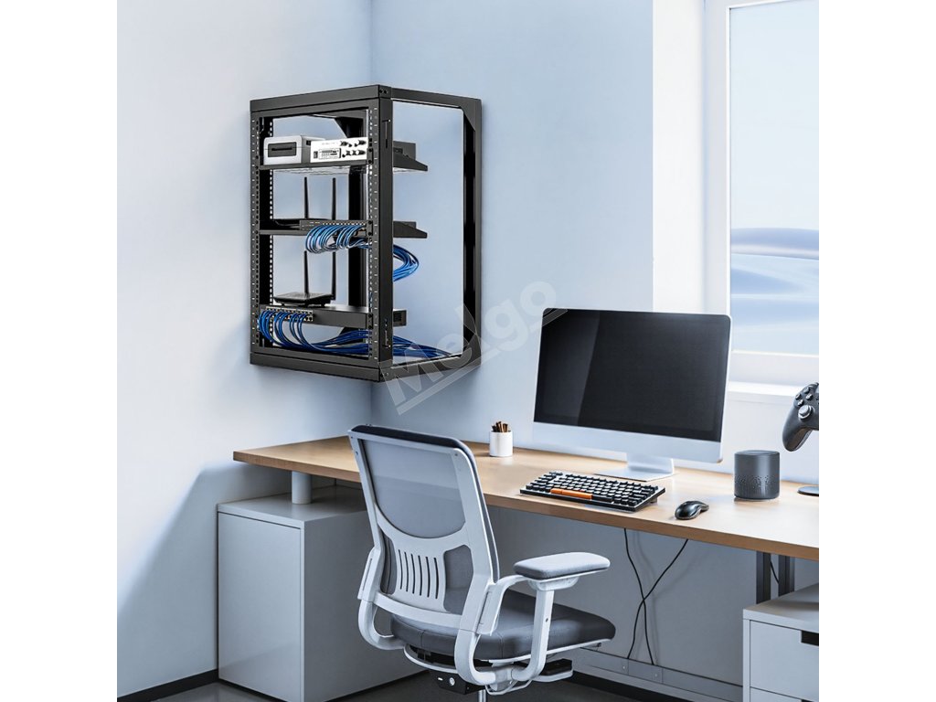 Tento nástenný stojan na servery má pevnú konštrukciu, odoláva otrasom a deformáciám, čím zaručuje bezpečnosť a spoľahlivosť.