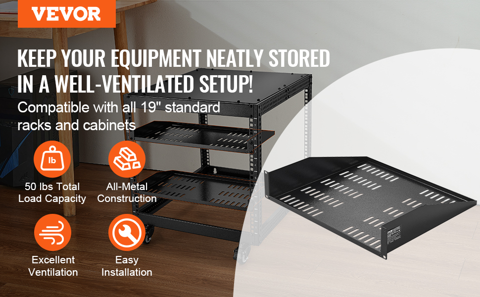 Vylepšite svoj pracovný priestor pomocou nášho serverového regálu, ktorý ponúka spoľahlivú podporu v každej kancelárii alebo dátovom centre! Štandardná výška 2U na bezproblémovú integráciu do akéhokoľvek 19" serverového stojana alebo skrine, pevná kovová konštrukcia udrží až 50 libier (22,68 kg) na jednu policu.