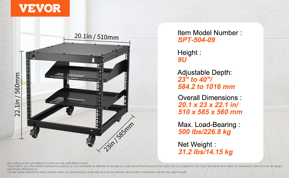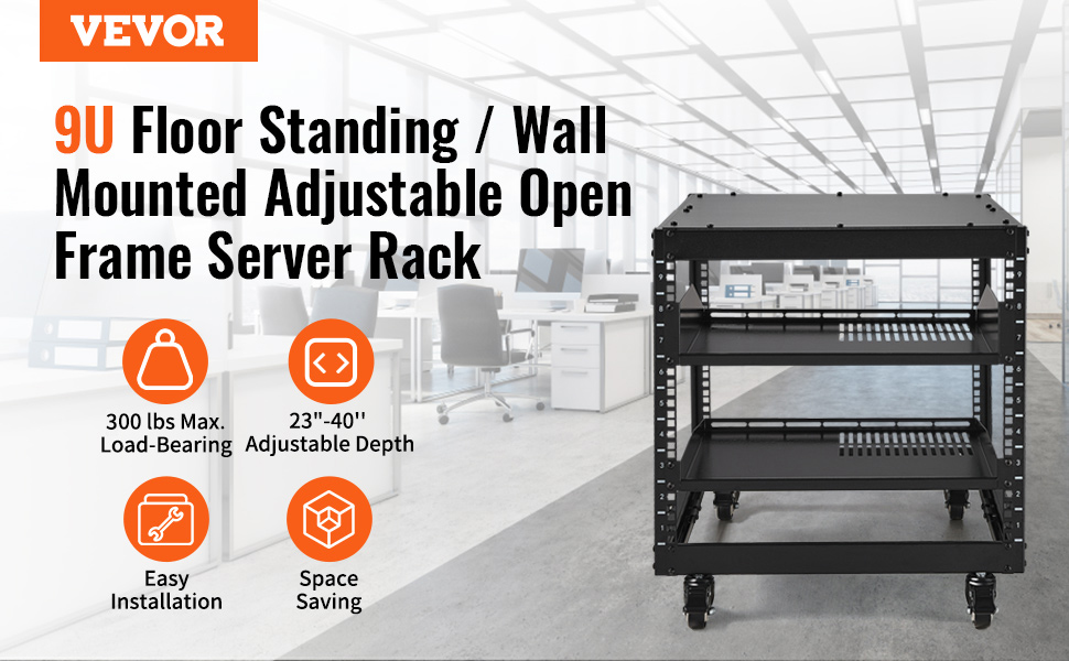 Náš rack s otvoreným rámom má nastaviteľnú hĺbku od 23" do 40" a môže byť namontovaný na stenu alebo voľne stojaci. Užívajte si vynikajúce vetranie, jednoduchú správu káblov a maximálne využitie priestoru. Vďaka pojazdným kolieskam je presun vášho racku hračkou. Ideálny pre maloobchodné miesta, kancelárie a všetky priestory s obmedzeným priestorom.
