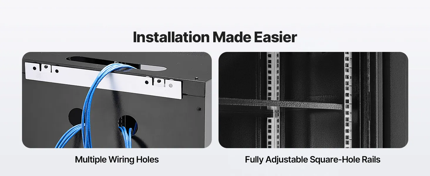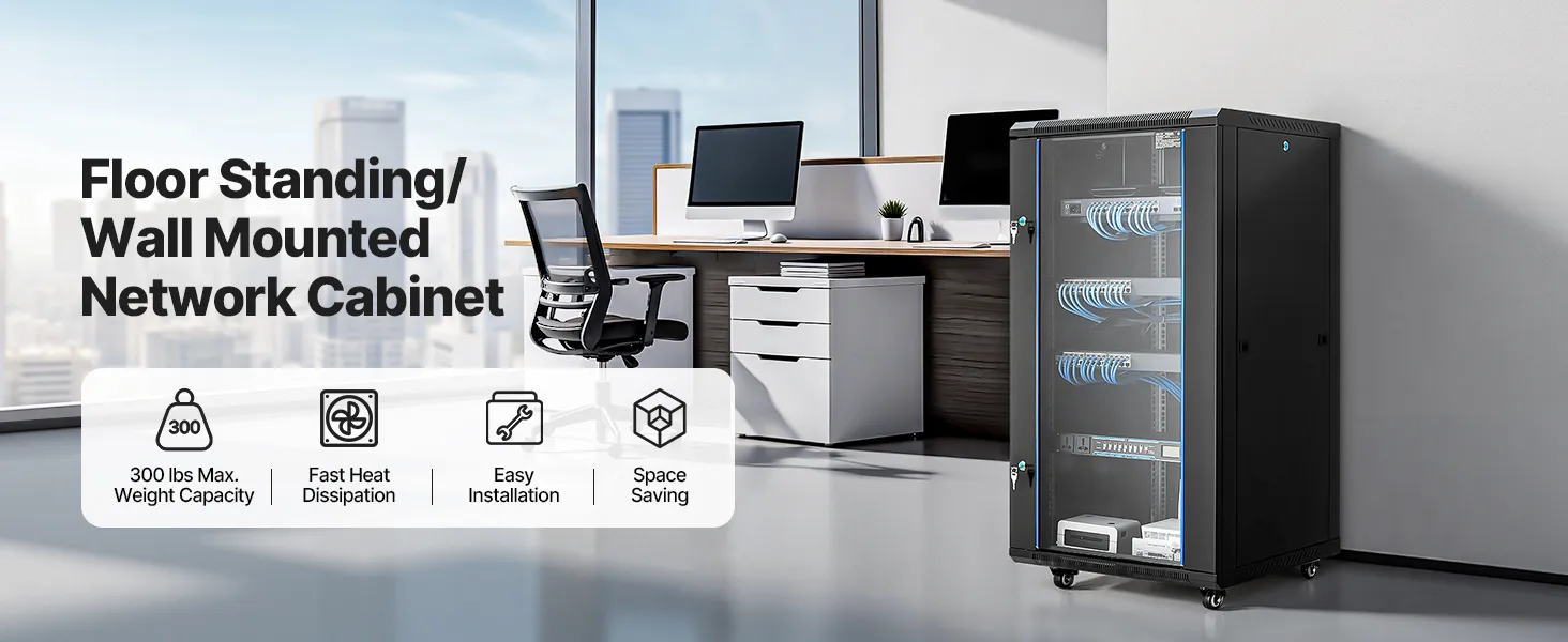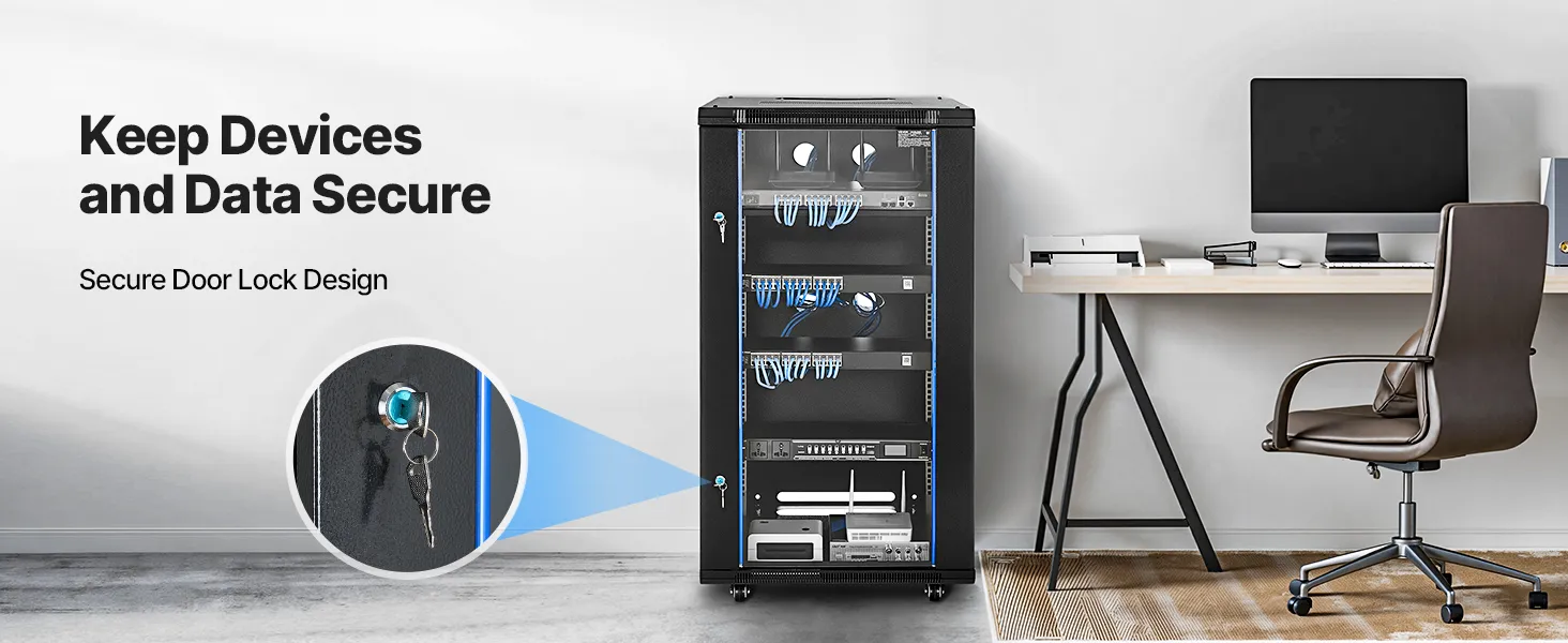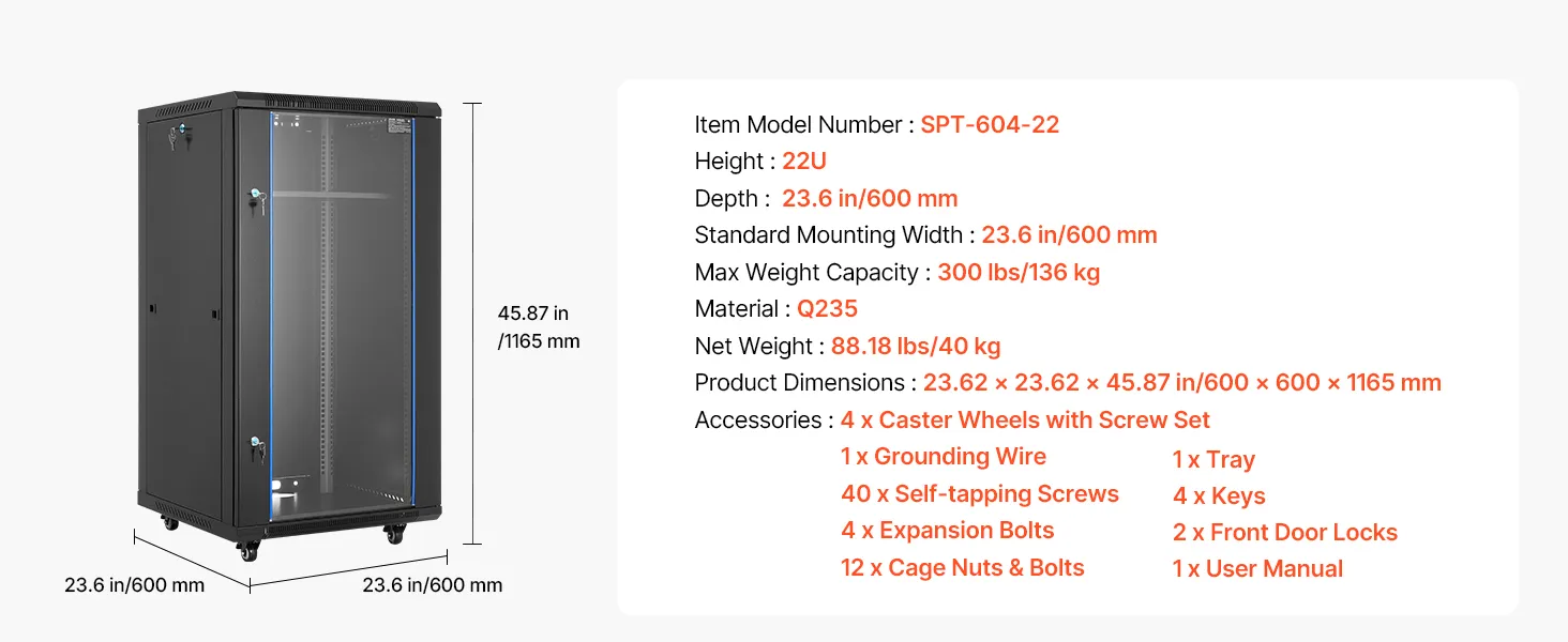 Zvýšte úložisko a bezpečnosť svojich sieťových zariadení pomocou našej uzavretej serverovej skrine! Vďaka hĺbke 23,6 palca, odolnej konštrukcii z uhlíkovej ocele a dverám z tvrdeného skla podporuje montáž na podlahu aj na stenu (maximálna nosnosť 200 libier).