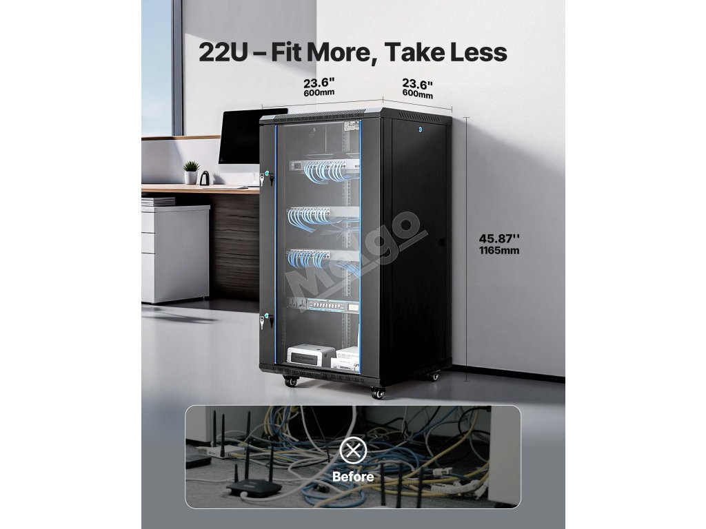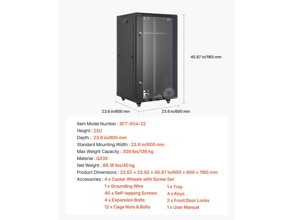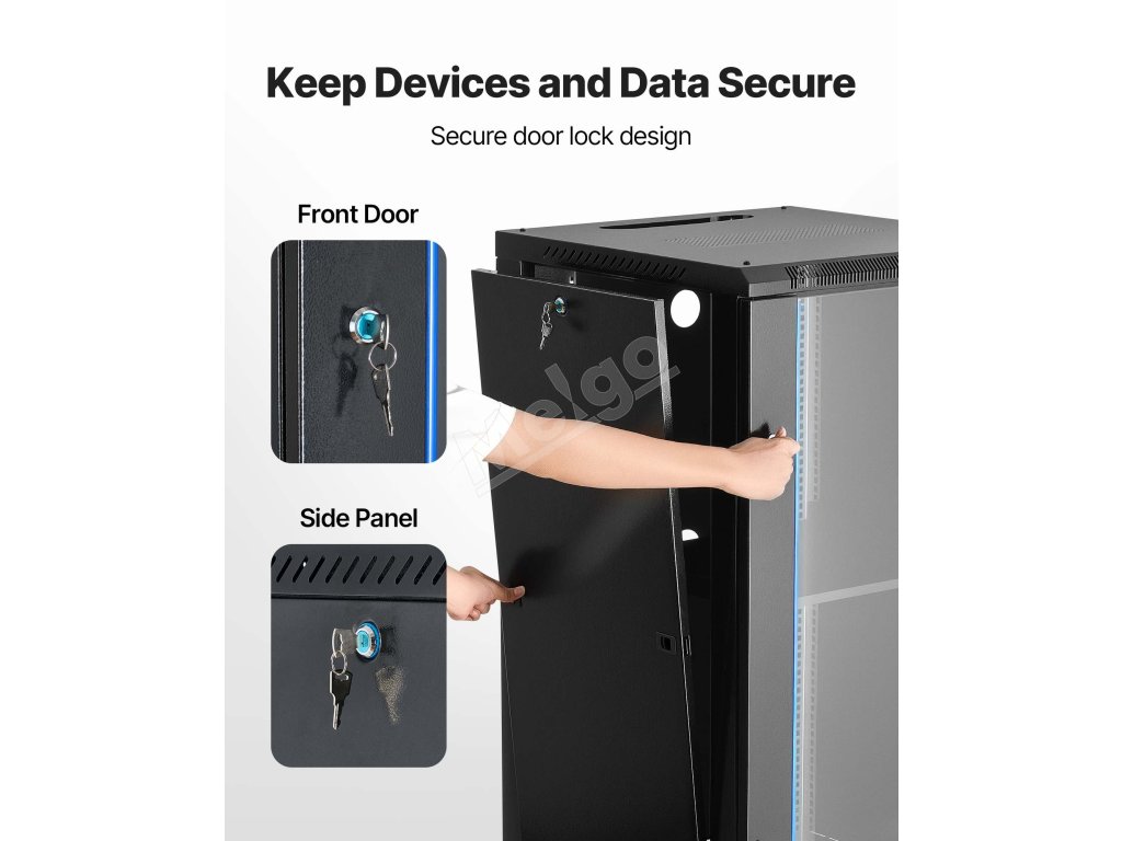 Zvýšte úložisko a bezpečnosť svojich sieťových zariadení pomocou našej uzavretej serverovej skrine! Vďaka hĺbke 23,6 palca, odolnej konštrukcii z uhlíkovej ocele a dverám z tvrdeného skla podporuje montáž na podlahu aj na stenu (maximálna nosnosť 200 libier).