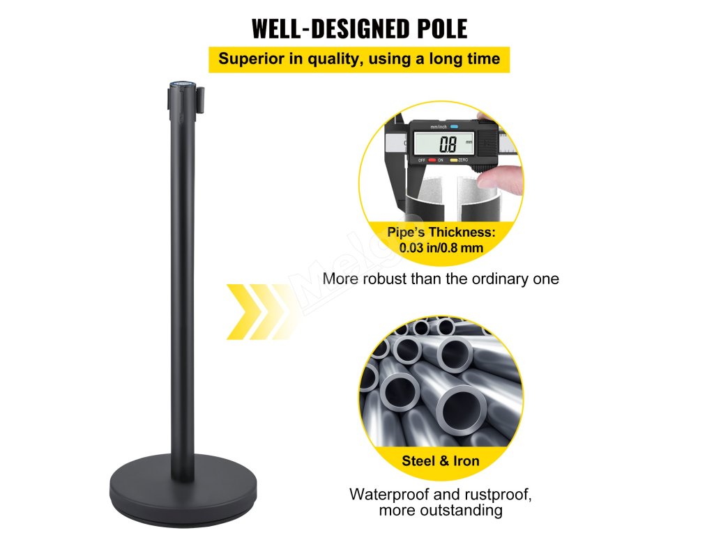 Sťahovací pás je vybavený polyesterom, ktorý je odolný bez vyblednutia. Pás sa dá ľahko natiahnuť, aby sa upravila vzdialenosť medzi dvoma stojanmi, a po odomknutí sa automaticky stiahne. Dĺžka pásu je až 6,6 stopy / 2 m, zaťahovanie je bezpečné a flexibilné.