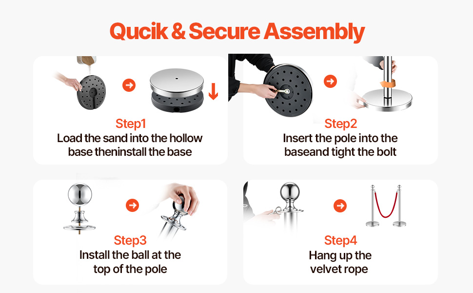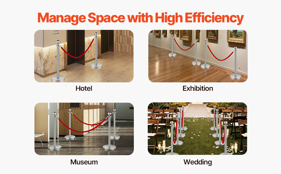 Každý stĺpik sa dodáva so zamatovým lanom s dĺžkou 4,92 ft / 1,5 m, vďaka čomu si môžete ľahko nastaviť dĺžku podľa svojich potrieb. Je to ideálne riešenie pre všetky vaše požiadavky na riadenie davu - rýchlo a jednoducho sa prispôsobí akémukoľvek podujatiu.