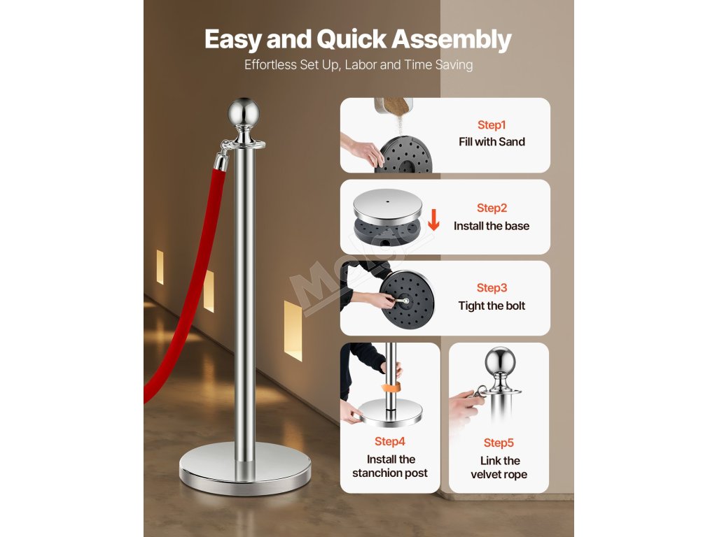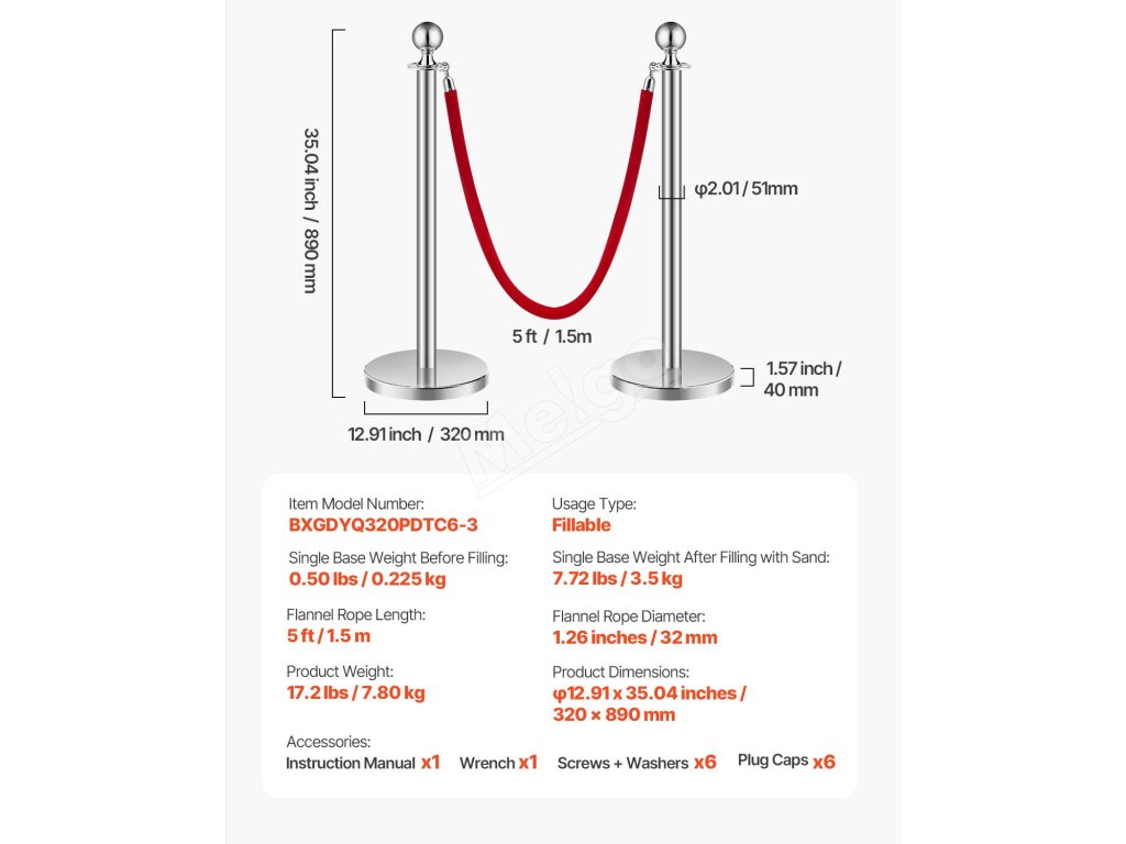 Každý stĺpik sa dodáva so zamatovým lanom s dĺžkou 4,92 ft / 1,5 m, vďaka čomu si môžete ľahko nastaviť dĺžku podľa svojich potrieb. Je to ideálne riešenie pre všetky vaše požiadavky na riadenie davu - rýchlo a jednoducho sa prispôsobí akémukoľvek podujatiu.