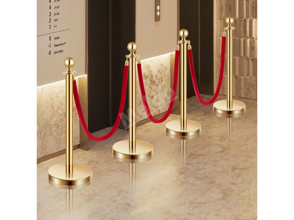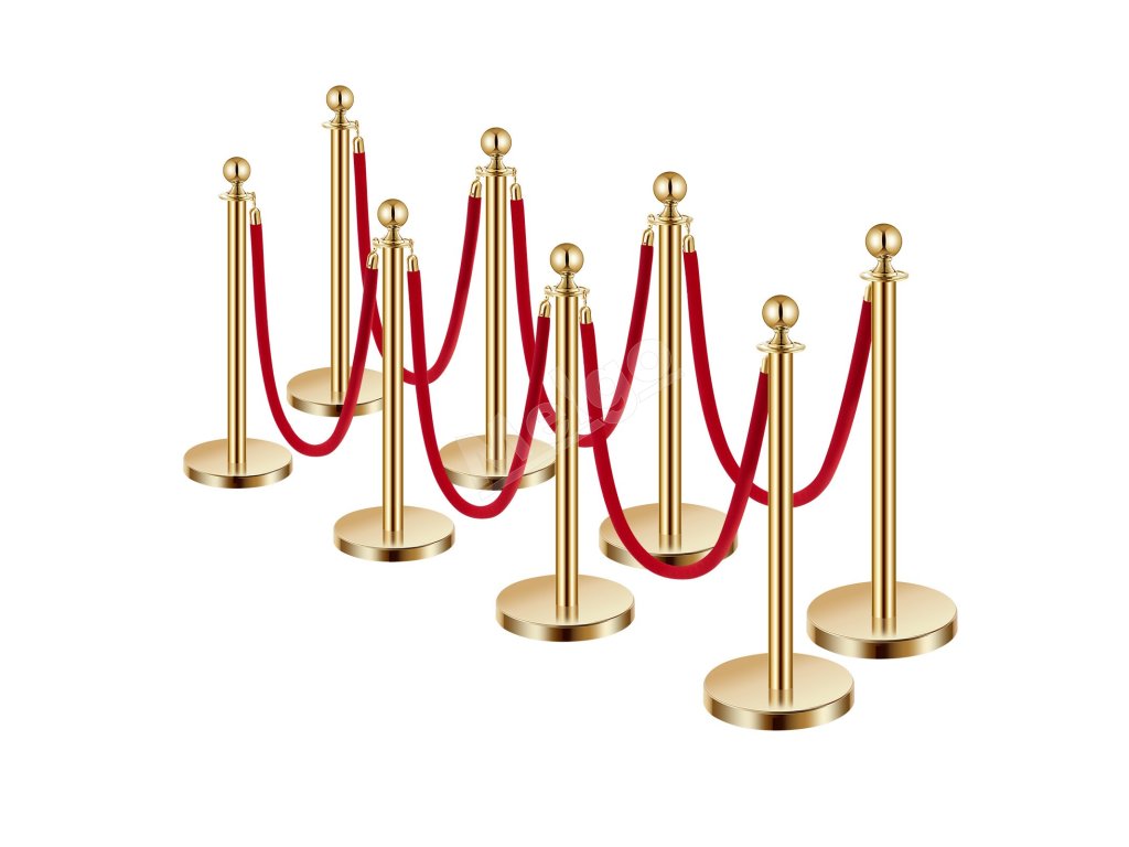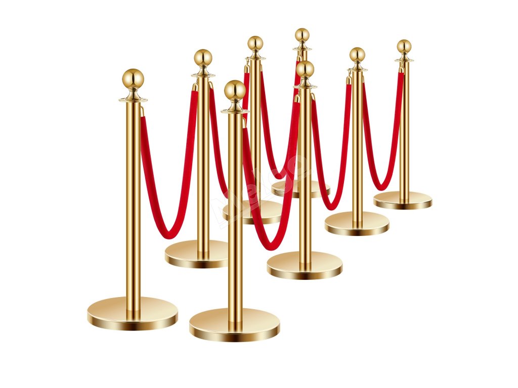 Stĺpiky pre riadenie davu, 8 ks, 6 červených šnúrok, 5 ft zlaté nerez