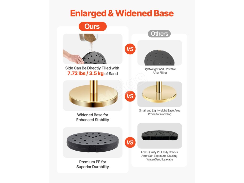 | Hmotnosť jednej základne po naplnení pieskom | 7.72 libier / 3,5 kg |