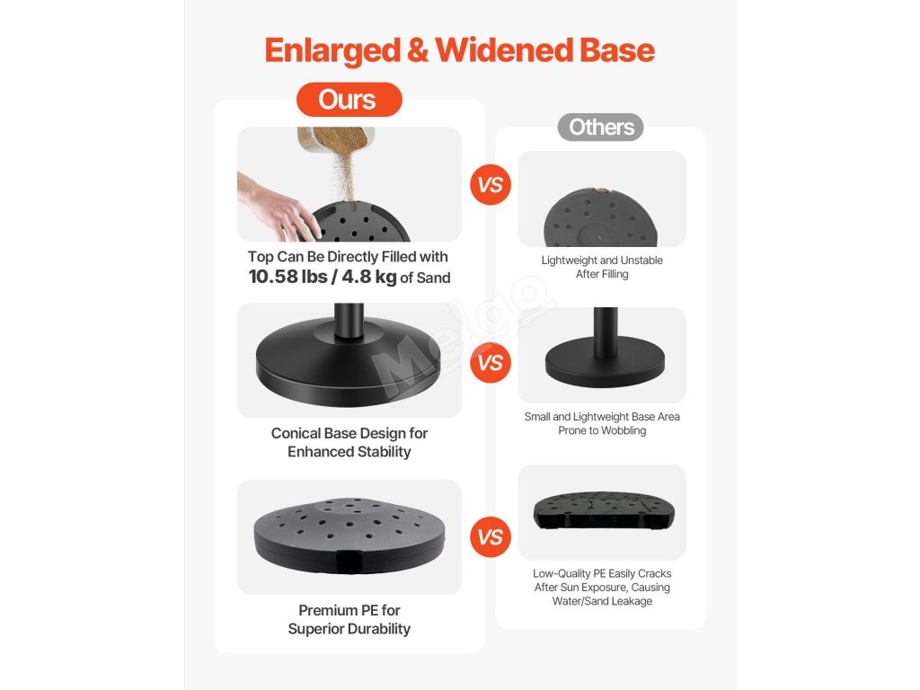 | Hmotnosť jednej základne po naplnení pieskom | 10.58 libier/ 4,8 kg |