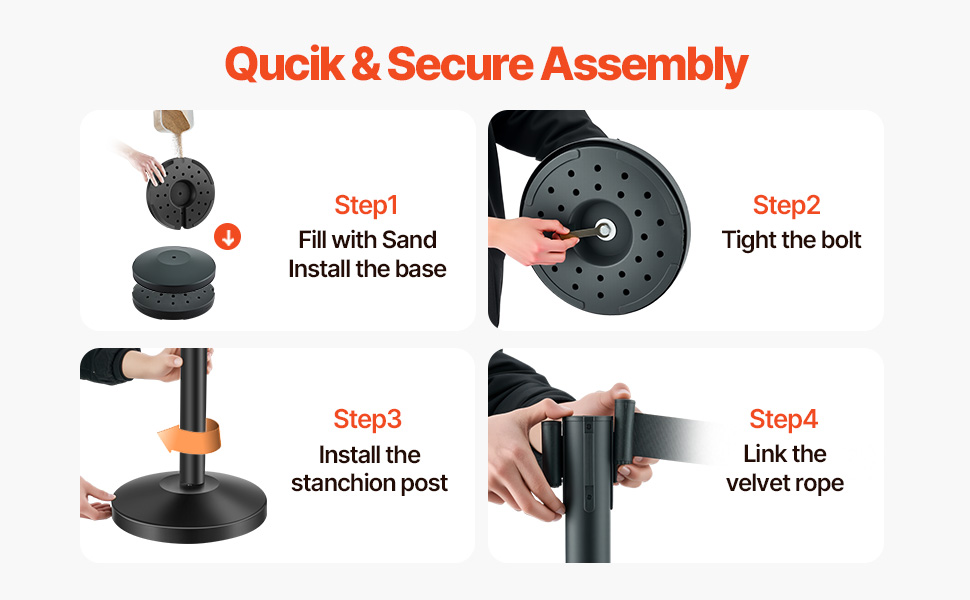 Stojany na ovládanie davu majú širokú základňu s pieskovou výplňou a protišmykovým dnom, čo zaručuje odolnosť a stabilitu. Či už je pod priamym slnečným svetlom, alebo vystavený náhlym nárazom, náš stojan je pevný a odolá svojej úlohe.