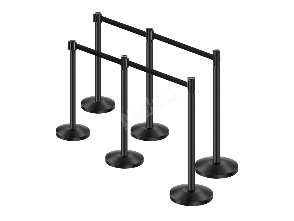 Stĺpiky s odťahovacími pásmi 6 ks, oceľ, čierne, dutá základňa