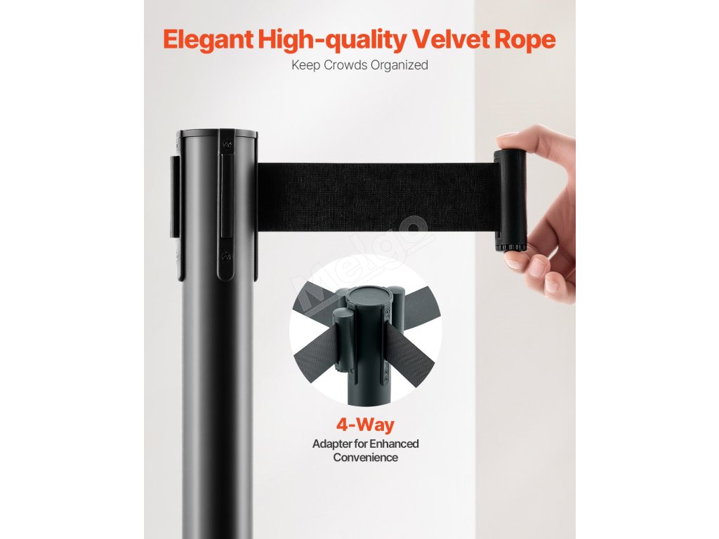 Každá zábrana na kontrolu davu sa dodáva so zaťahovacím pásom, vďaka čomu je vysoko univerzálna a ľahko sa nastavuje. Pás môžete jednoducho predĺžiť alebo skrátiť, aby sa prispôsobil rôznym priestorom a príležitostiam, čo vám ponúka flexibilné riešenia na riadenie davu.