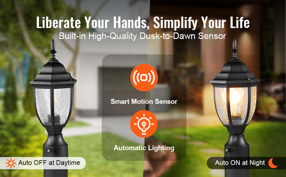 Objavte naše vonkajšie stĺpikové svietidlo vybavené vysokokvalitným snímačom fotobunky od súmraku do úsvitu. Inteligentne zisťuje úroveň okolitého svetla, automaticky sa zapína v noci a vypína počas dňa. Táto hands-free funkcia vám nielen zjednoduší život, ale pomôže vám aj ušetriť náklady na energiu!