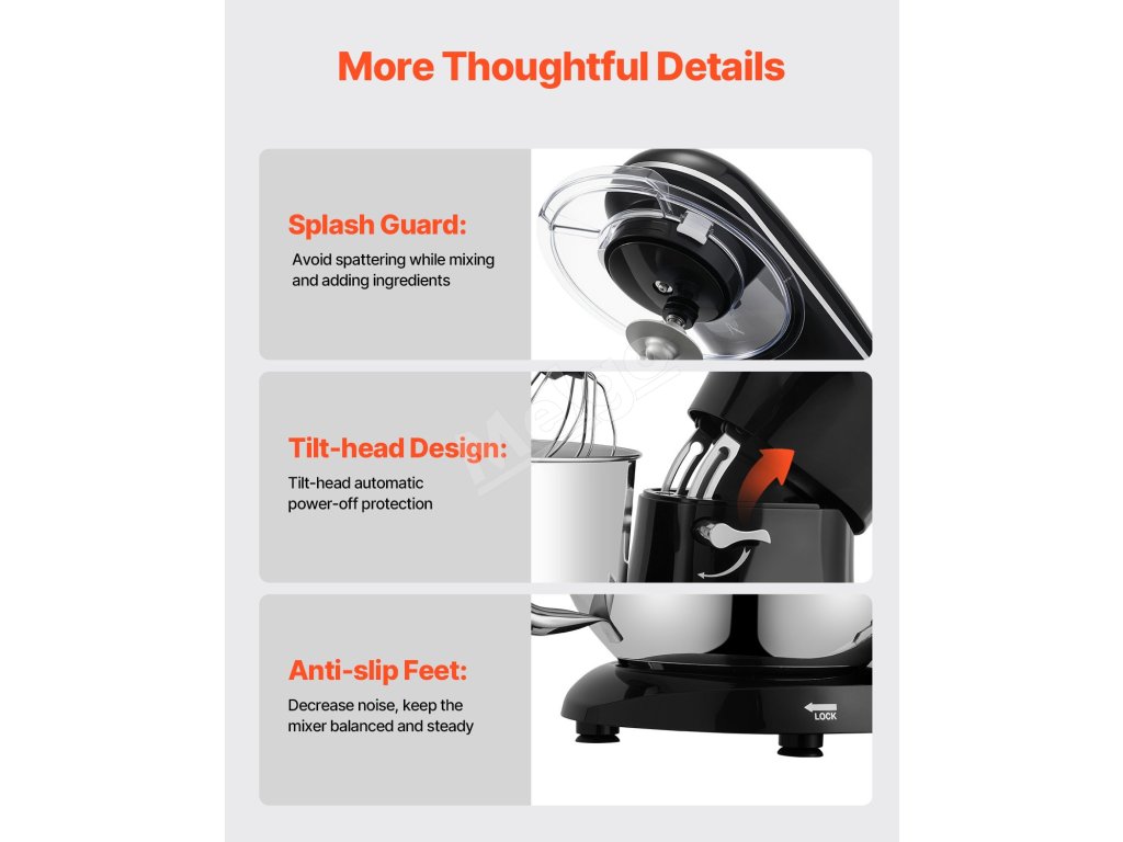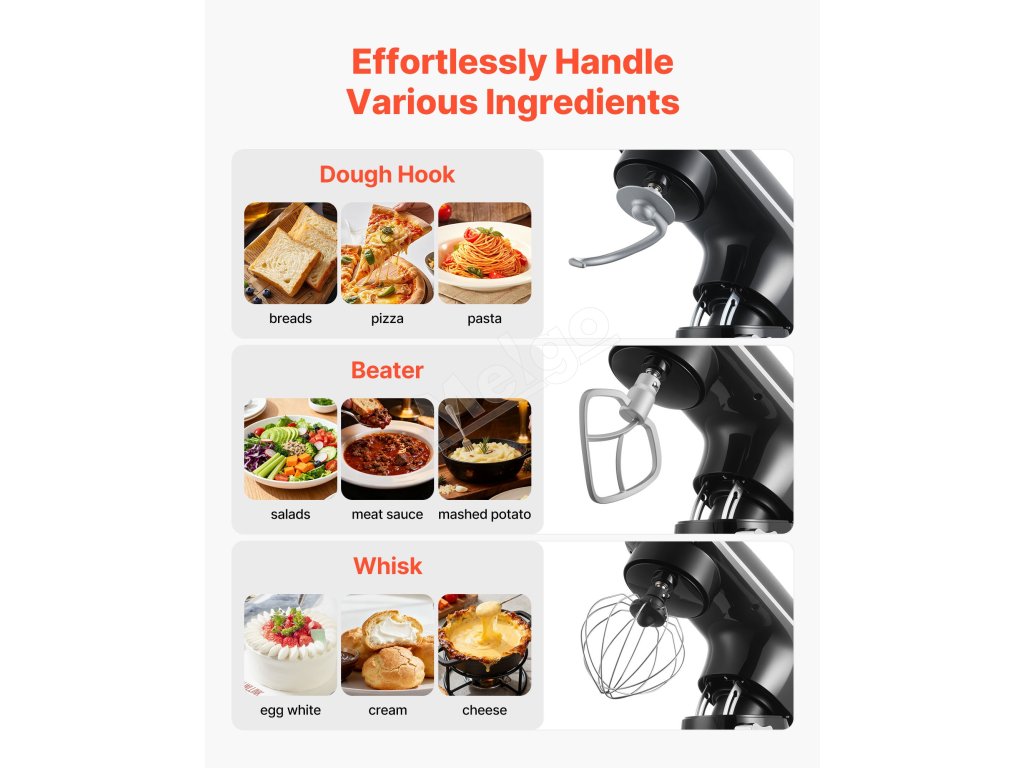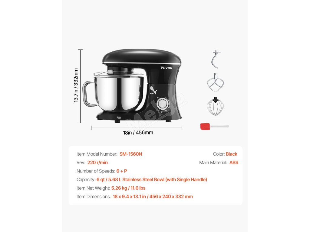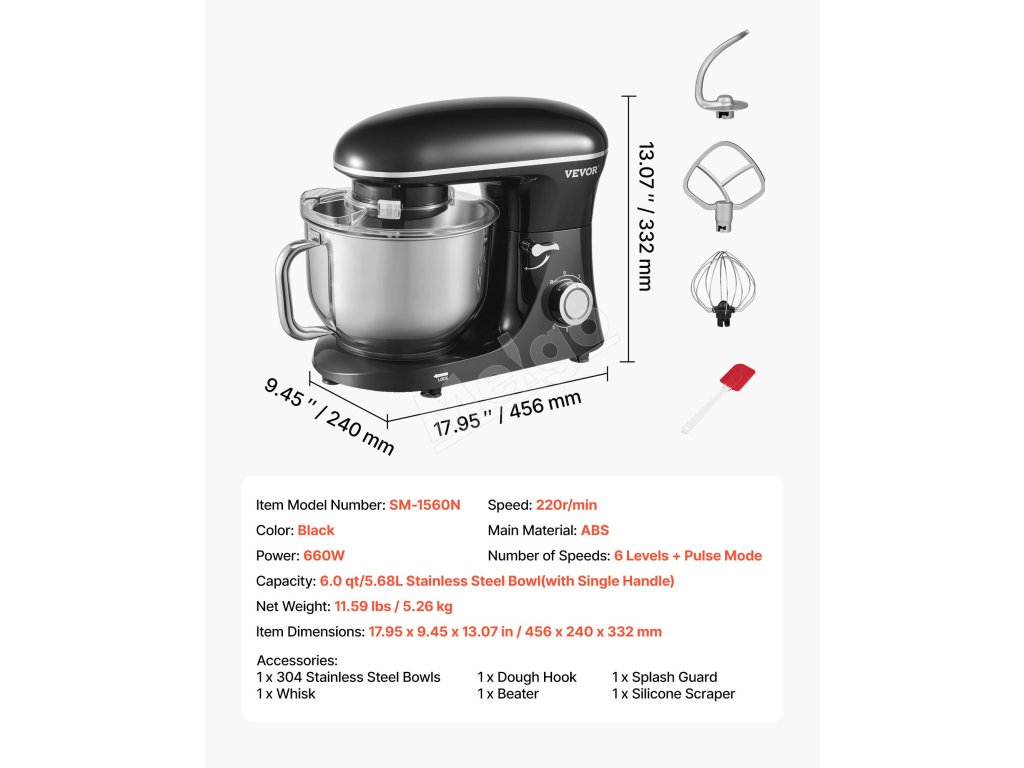 Zbavte sa starostí s prípravou jedla s naším stojanovým mixérom. Vďaka priestrannej miešacej mise s objemom 6 qt (5,68 l) zvládnete bez námahy veľké dávky. vďaka 6 rýchlostiam, pulznej funkcii a 3 nadstavcom je ideálny na všetky ingrediencie. Zostavený z robustného kovu a nehrdzavejúcej ocele pre dlhotrvajúcu odolnosť.