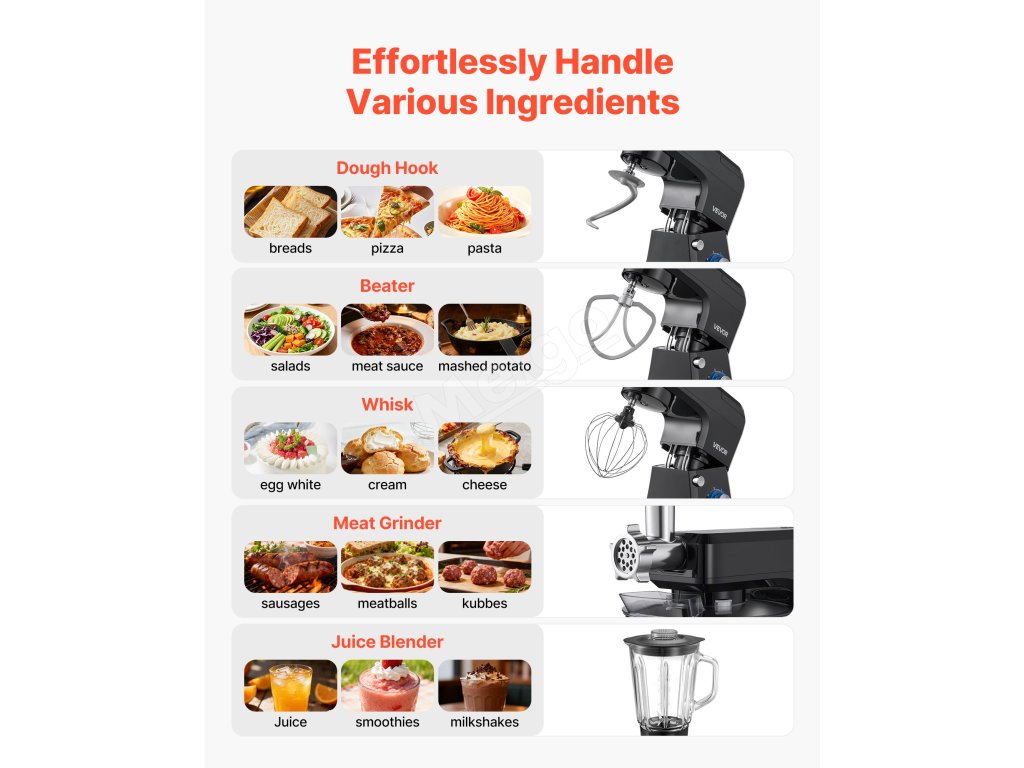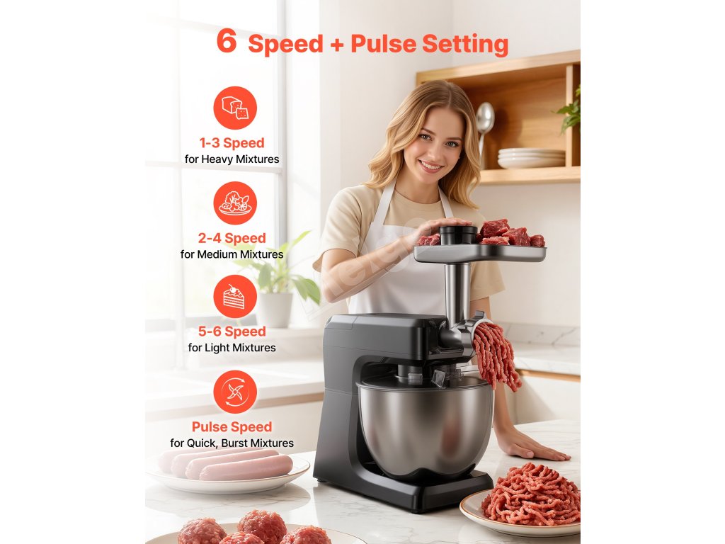 Zbavte sa starostí s prípravou jedla s naším stojanovým mixérom. Vďaka priestrannej mixovacej nádobe zvládnete bez námahy veľké dávky. Vďaka viacnásobnému ovládaniu rýchlosti a bohatým nástavcom je ideálny pre všetky prísady. Zostavený z robustného kovu a nehrdzavejúcej ocele pre dlhotrvajúcu odolnosť.