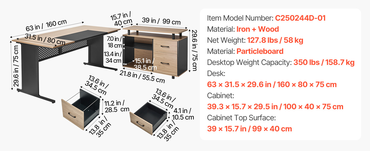 | Pracovný stôl | 63 x 31,5 x 29,6 palca/160 x 80 x 75 cm |