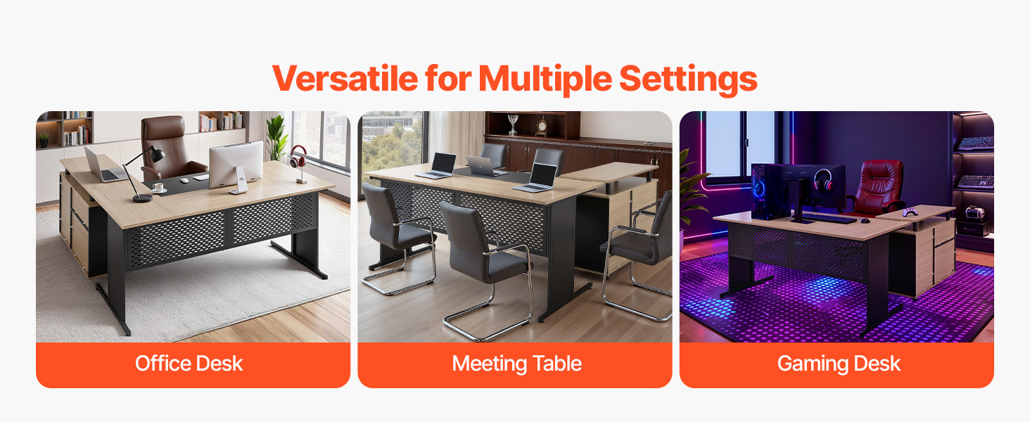 Tento veľký stôl v tvare L slúži ako počítačový stôl, kancelársky stôl, konferenčný stôl, herný stôl alebo jedálenský stôl. Jeho jednoduchý, prispôsobivý dizajn sa hodí k rôznym štýlom interiéru, takže je ideálny na domáce a kancelárske použitie.