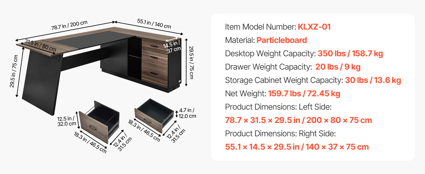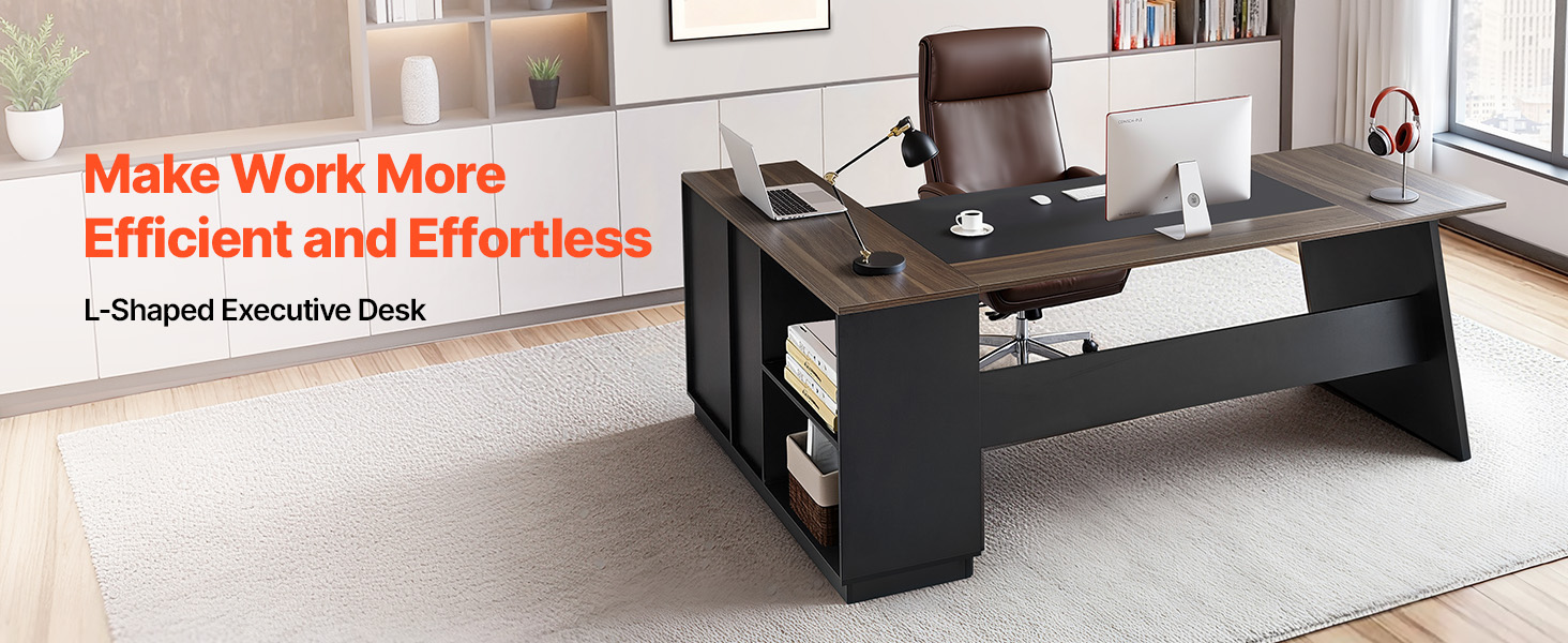 Manažérsky stôl v tvare L kombinuje hrubú drevenú dosku s pevnou drevotrieskovou základňou. Ľahko sa naň zmestia počítače, tlačiarne a iné kancelárske vybavenie, čím sa zabezpečí trvalá stabilita a zároveň sa zabráni kolísaniu aj pri dlhšom používaní.