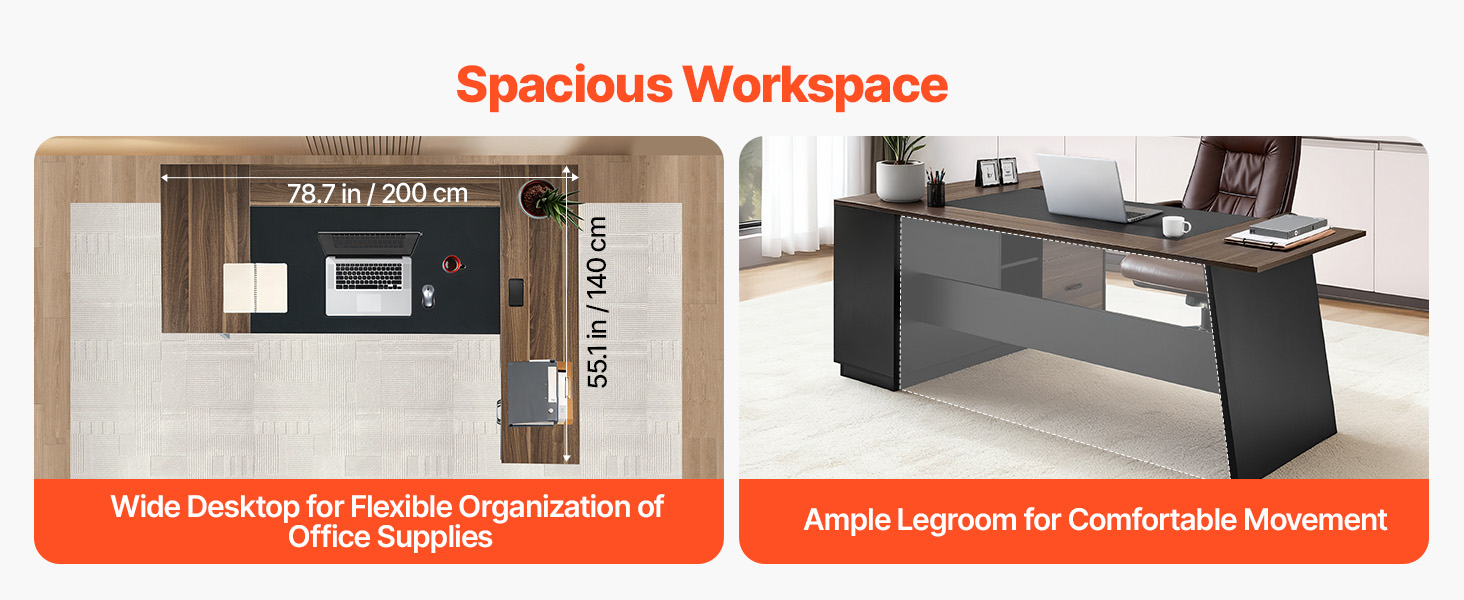 Tento manažérsky stôl v tvare písmena L využíva veľkú pracovnú plochu, ktorá poskytuje dostatok priestoru na všetky vaše kancelárske potreby. Veľkorysý priestor na nohy umožňuje ľahký pohyb nôh, čím znižuje únavu počas dlhých hodín práce a zabezpečuje pohodlnú prácu.