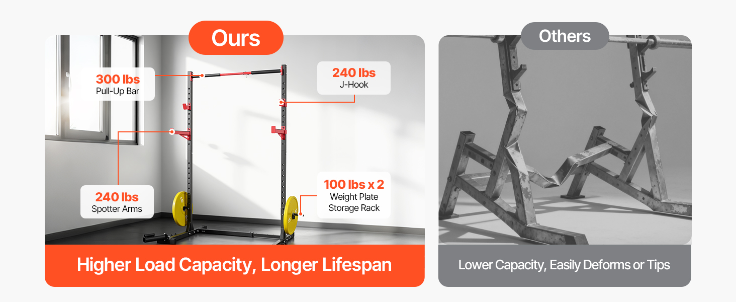 Tento posilňovací stojan pre domáce posilňovne je vyrobený z vystužených materiálov a má pevnejší rám, odoláva deformácii a zároveň poskytuje vynikajúcu podporu zaťaženia a dlhodobú odolnosť, vďaka čomu môžete trénovať s väčšou istotou.