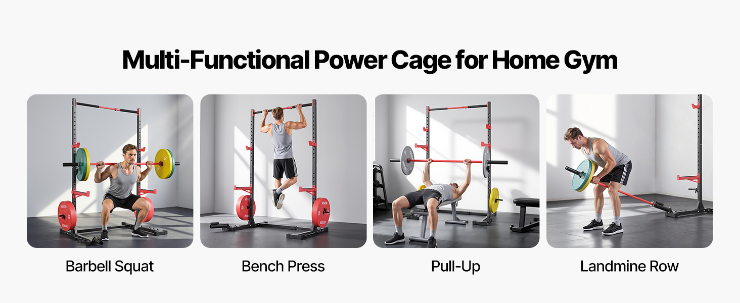 Zlepšite svoje domáce fitness zážitky s multifunkčnou posilňovacou klietkou VEVOR. Je vyrobená z odolnej uhlíkovej ocele, má vysokú nosnosť, stabilnú konštrukciu a nastaviteľnú výšku a šírku, čím poskytuje bezpečné, spoľahlivé a efektívne cvičenie na posilnenie tela a zlepšenie stability jadra.