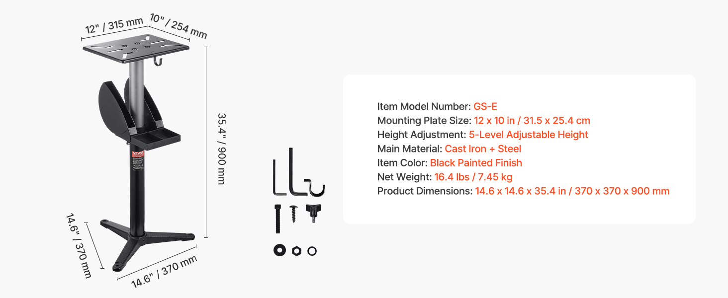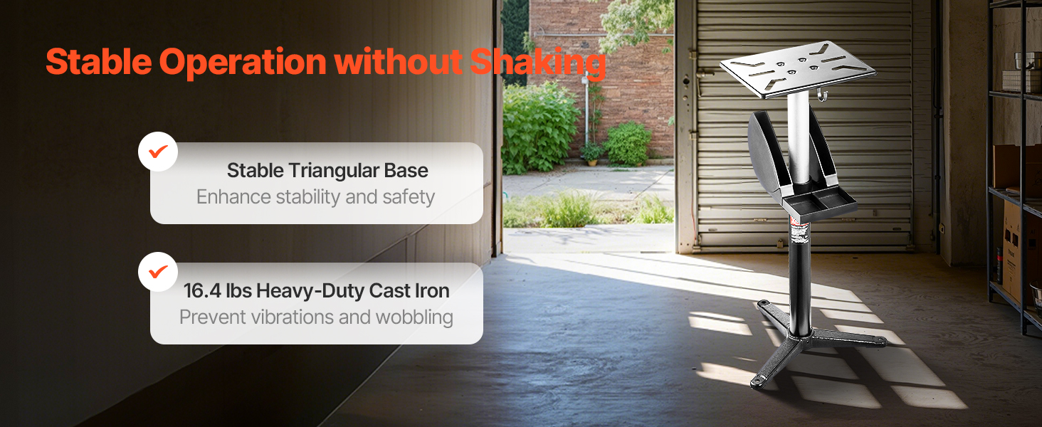 Tento podlahový podstavec pre stolové brúsky, vyrobený z 16,4 lbs (7,45 kg) odolnej liatiny a ocele, poskytuje stabilnú oporu, znižuje vibrácie počas prevádzky a zabezpečuje stabilné a presné brúsenie.
