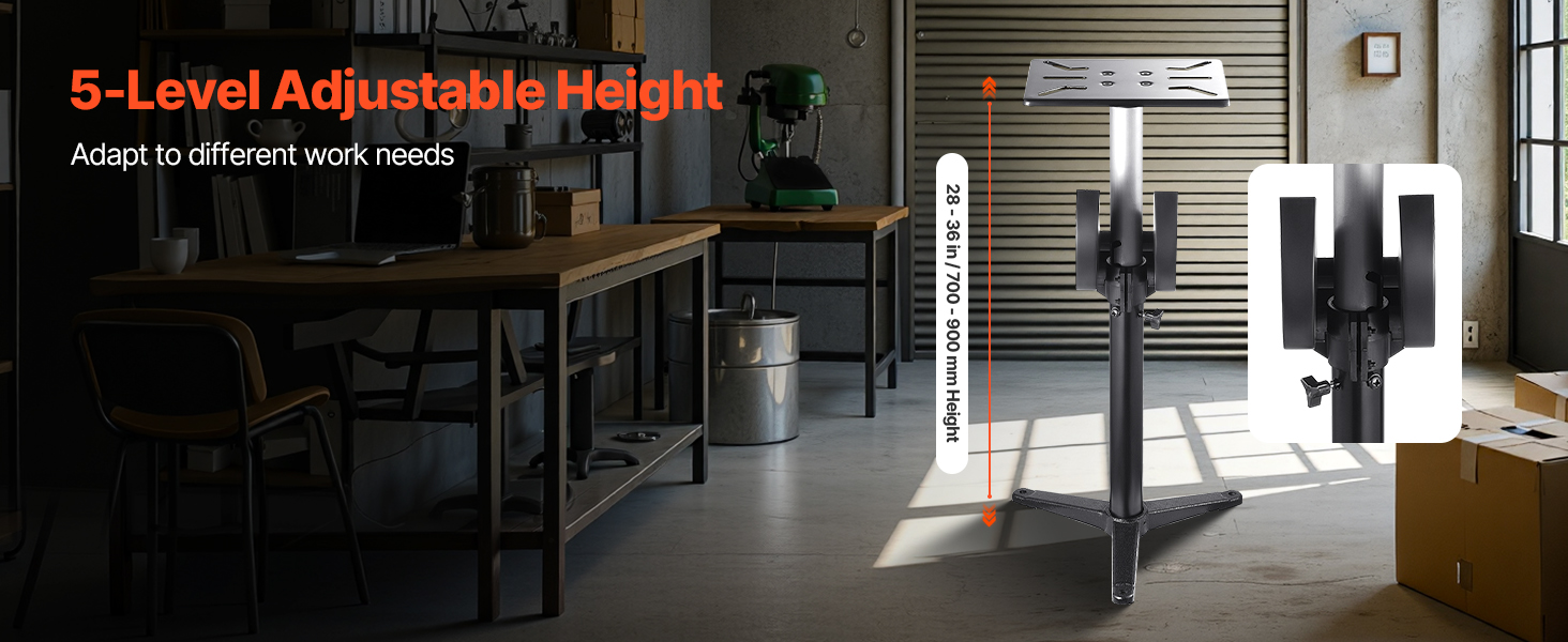 Jednoduché nastavenie výšky od 28'' do 36'' (700-900 mm), aby vyhovovala rôznym preferenciám používateľa a pracovným podmienkam. Vychutnajte si zvýšený komfort a zníženú únavu pre efektívnejšie brúsenie.