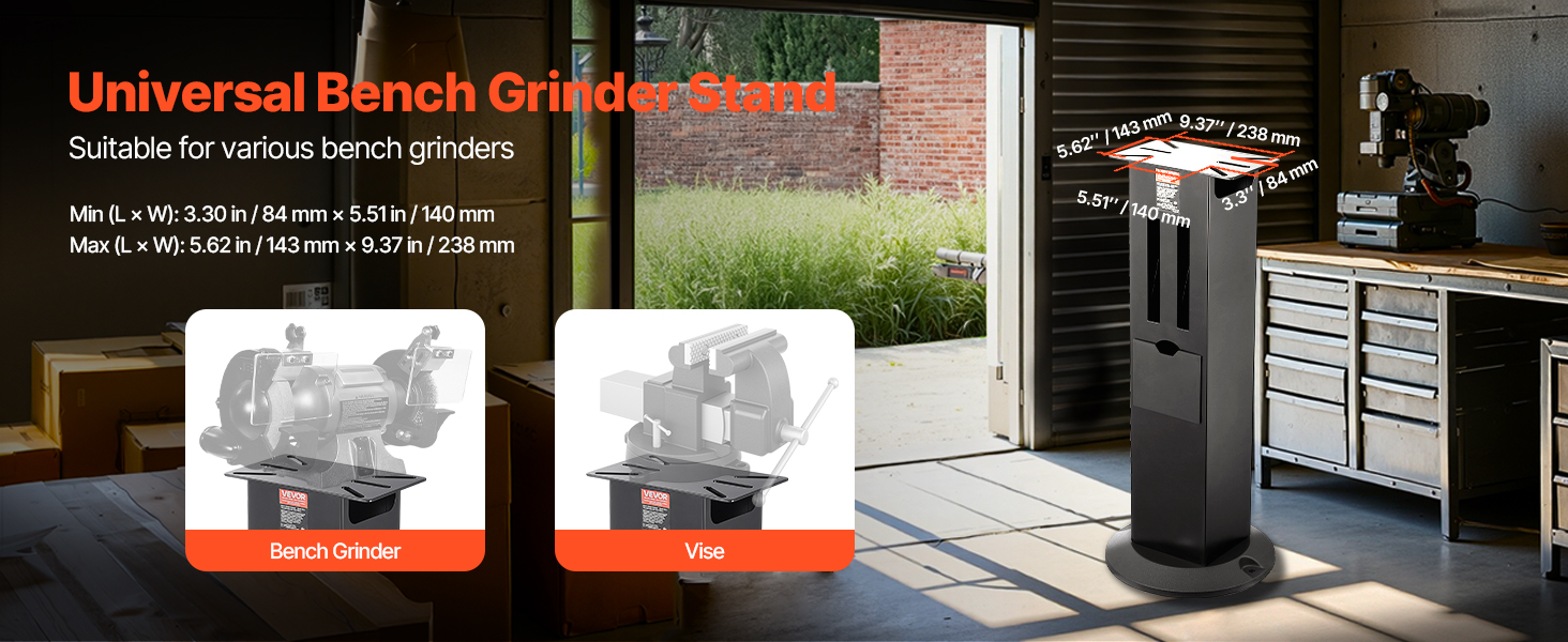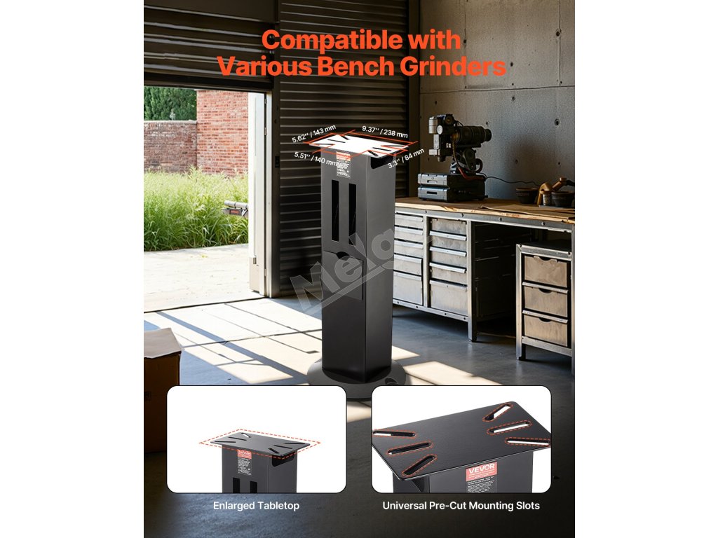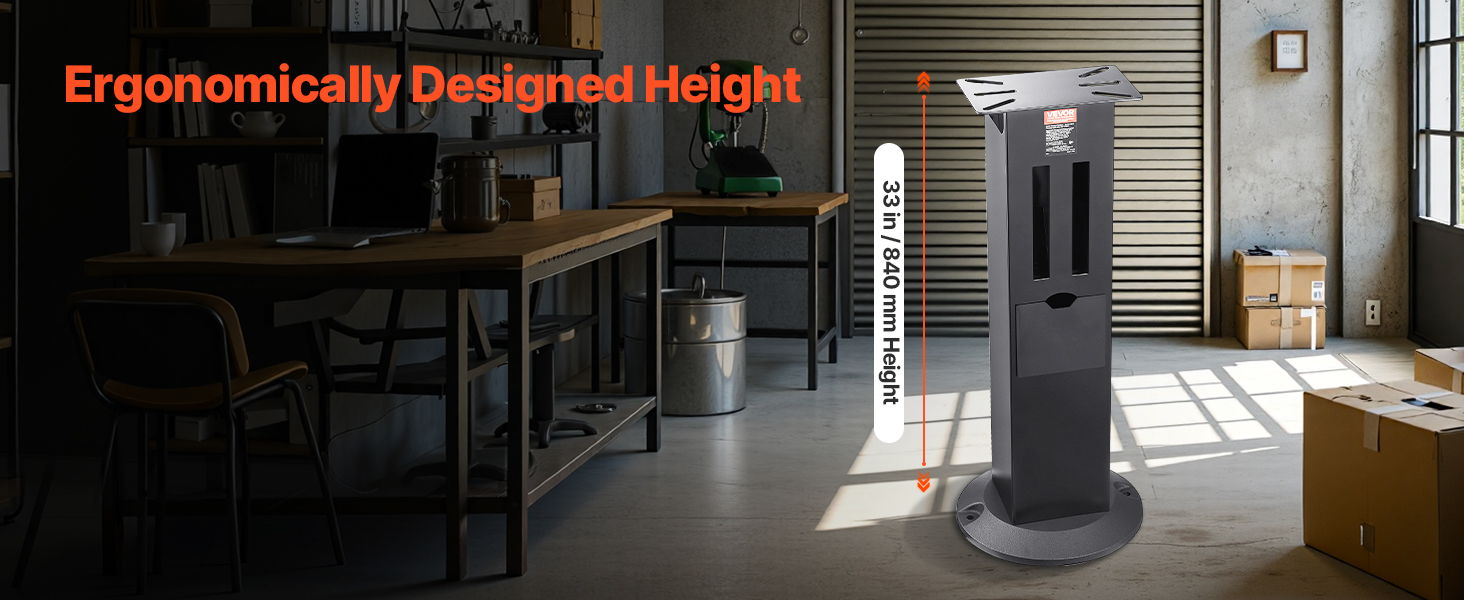 Vďaka výške 33 palcov (840 mm) ponúka tento podstavec stolovej brúsky ergonomickú pracovnú polohu, ktorá znižuje únavu a zabezpečuje pohodlnejšie a presnejšie brúsenie.