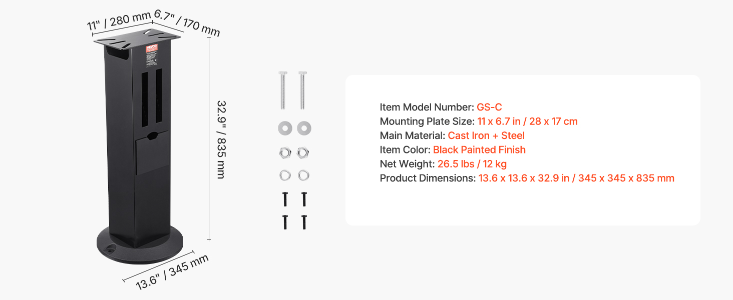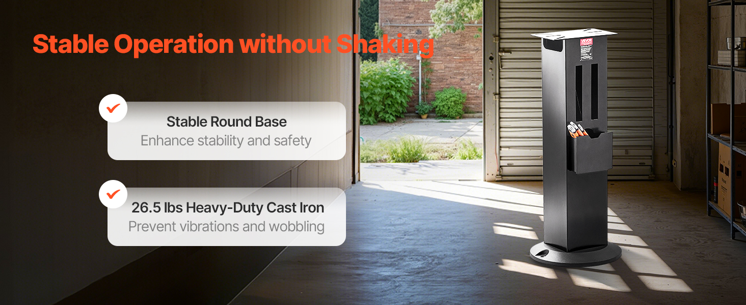 Tento podlahový podstavec pre stolové brúsky, vyrobený z 26,5 lbs (12 kg) odolnej liatiny a ocele, poskytuje stabilnú oporu, znižuje vibrácie počas prevádzky a zabezpečuje stabilné a presné brúsenie.