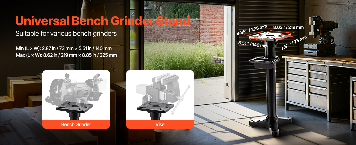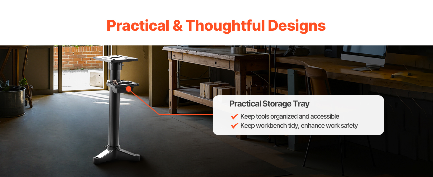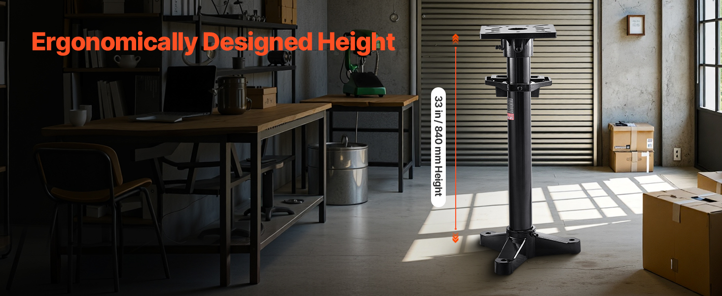 Vďaka výške 33 palcov (840 mm) ponúka tento podstavec stolovej brúsky ergonomickú pracovnú polohu, ktorá znižuje únavu a zabezpečuje pohodlnejšie a presnejšie brúsenie.